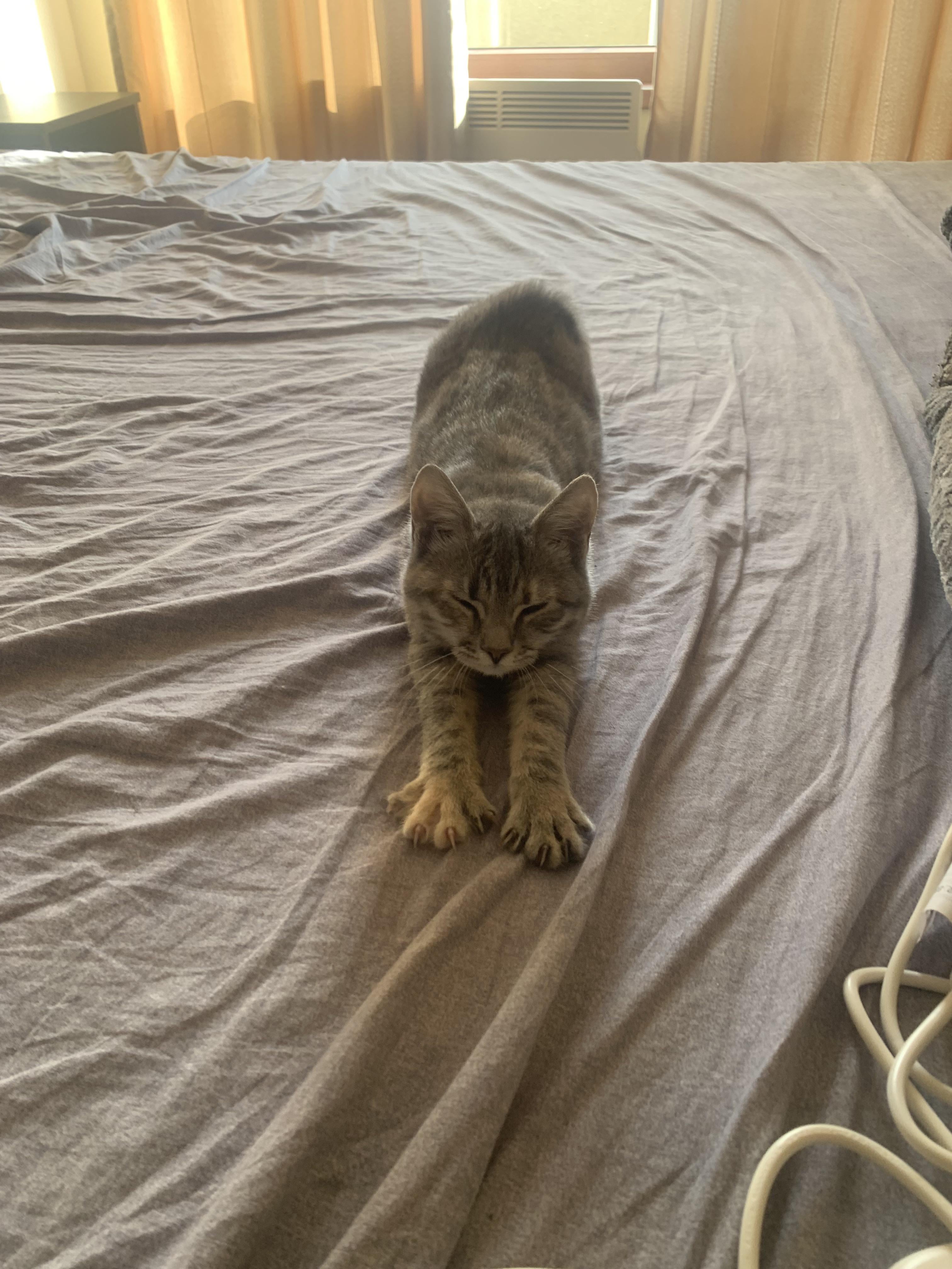 My cat does this little stretch every morning like she’s clocking in for work