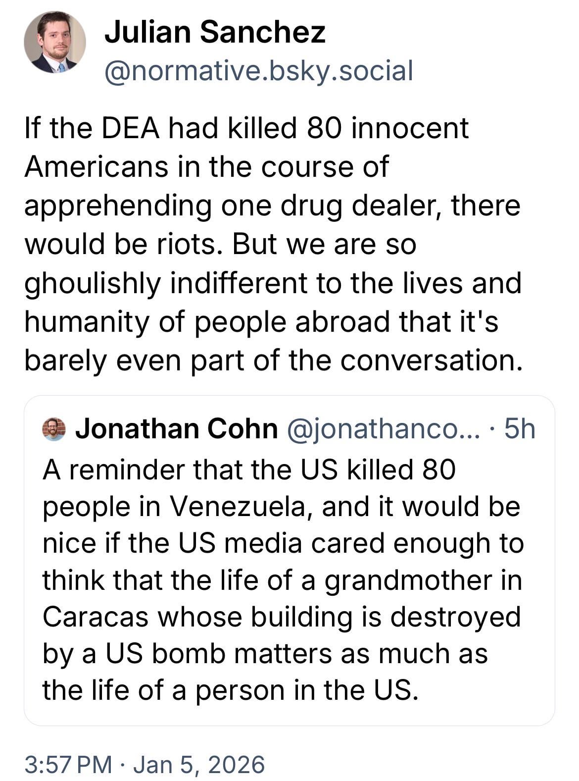 Does the death of 80 bystanders not matter now?