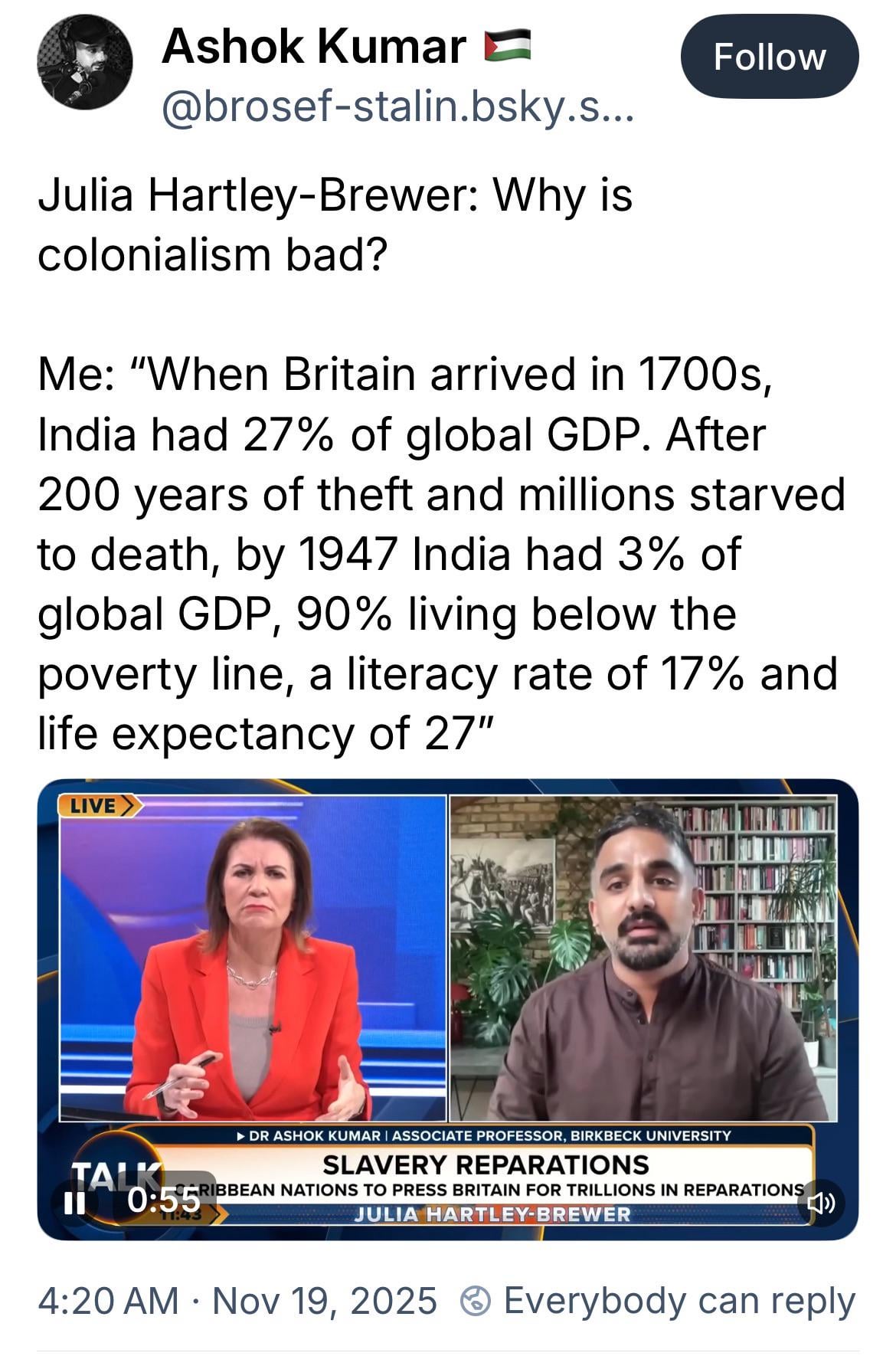Julia Hartley-Brewer: “Why is colonialism bad?”