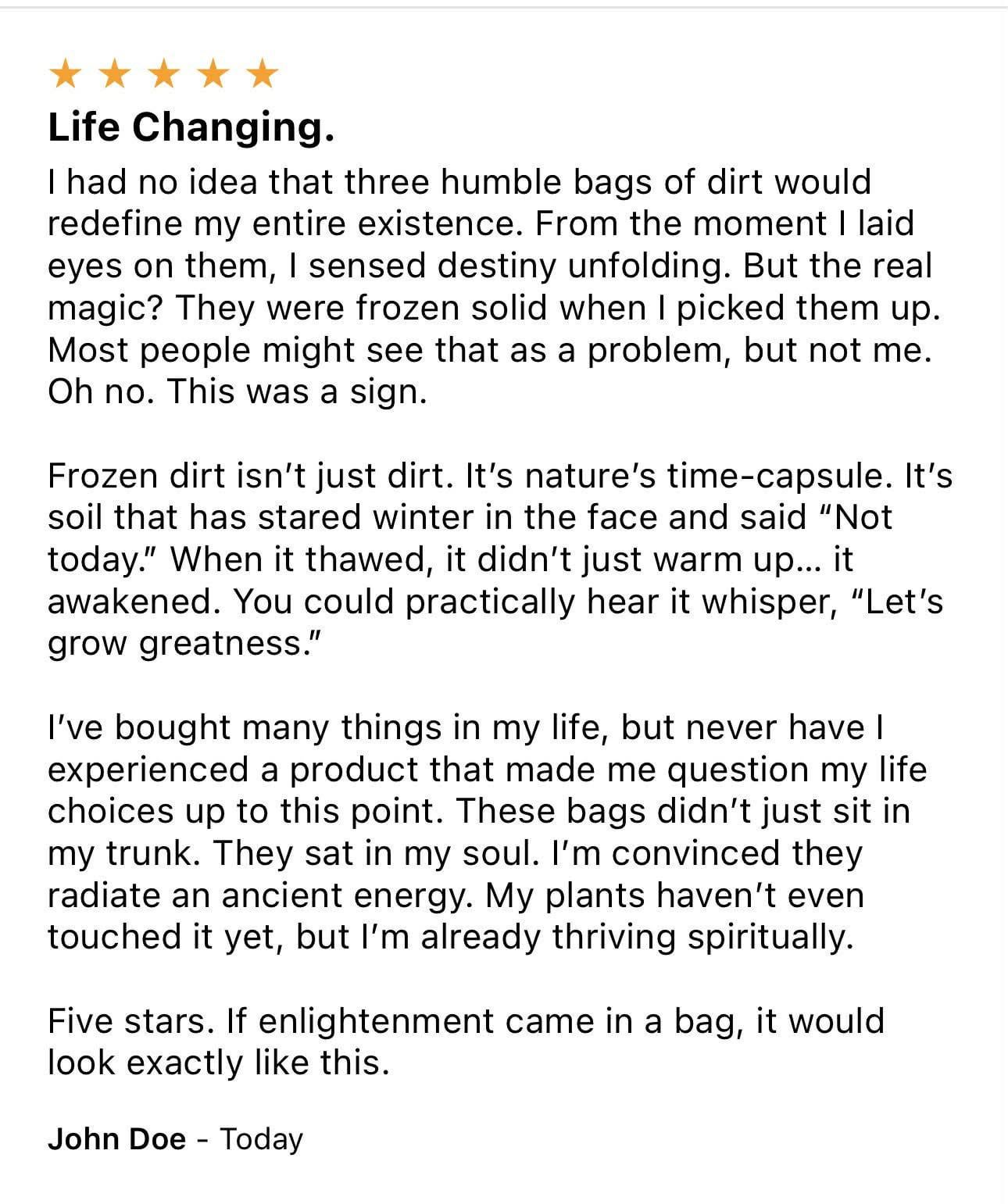 I bought some dirt and they wanted feedback…
