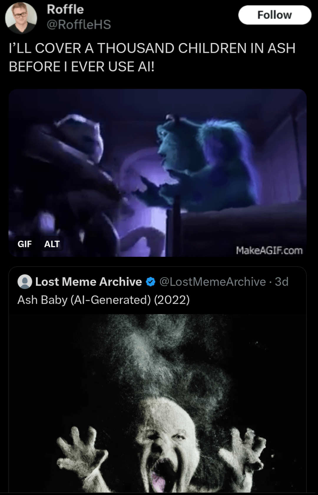 Woulda been better for the environment if they dropped a real baby in real hot ashe.