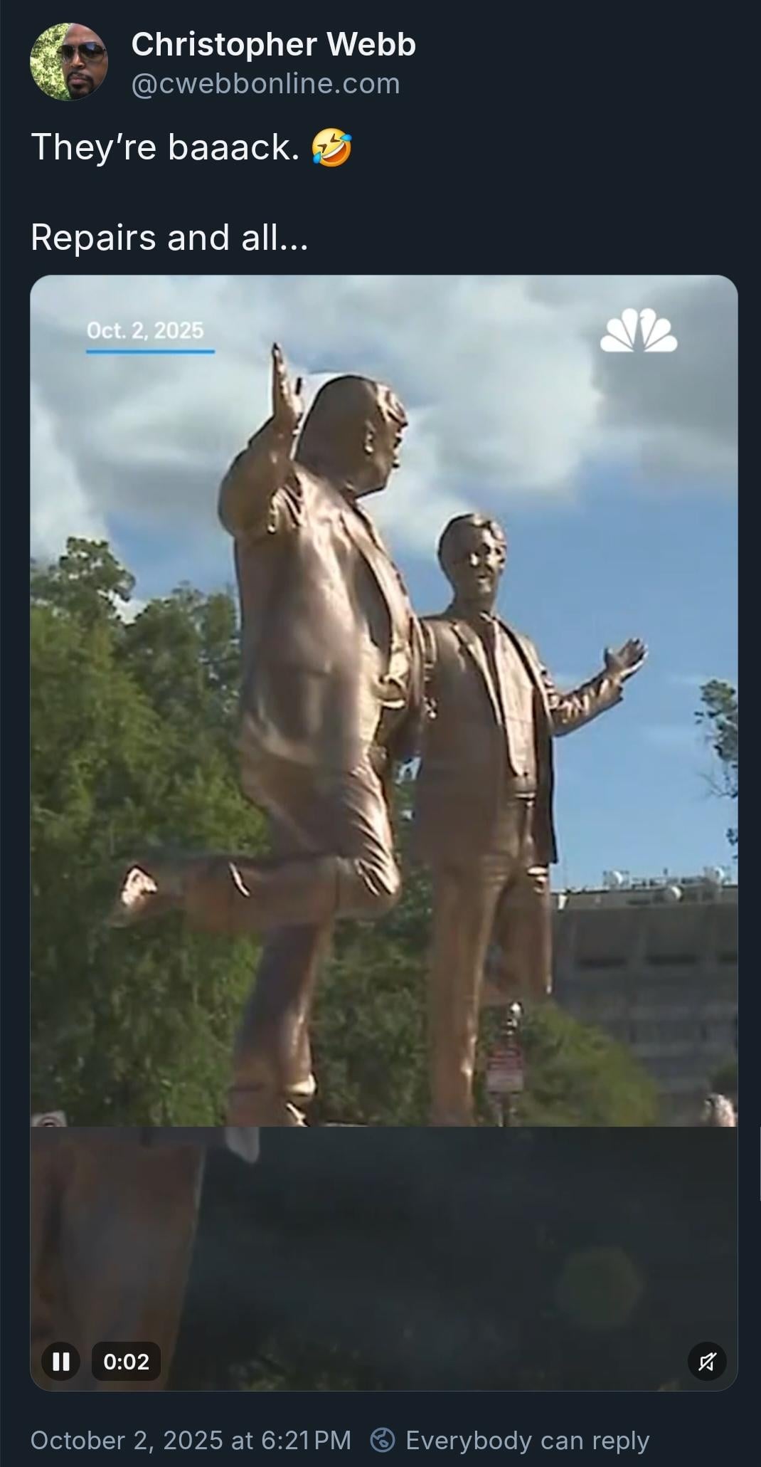 Best Fiends Forever: Statue of Donald Trump and Jeffery Epstein returns to the National Mall