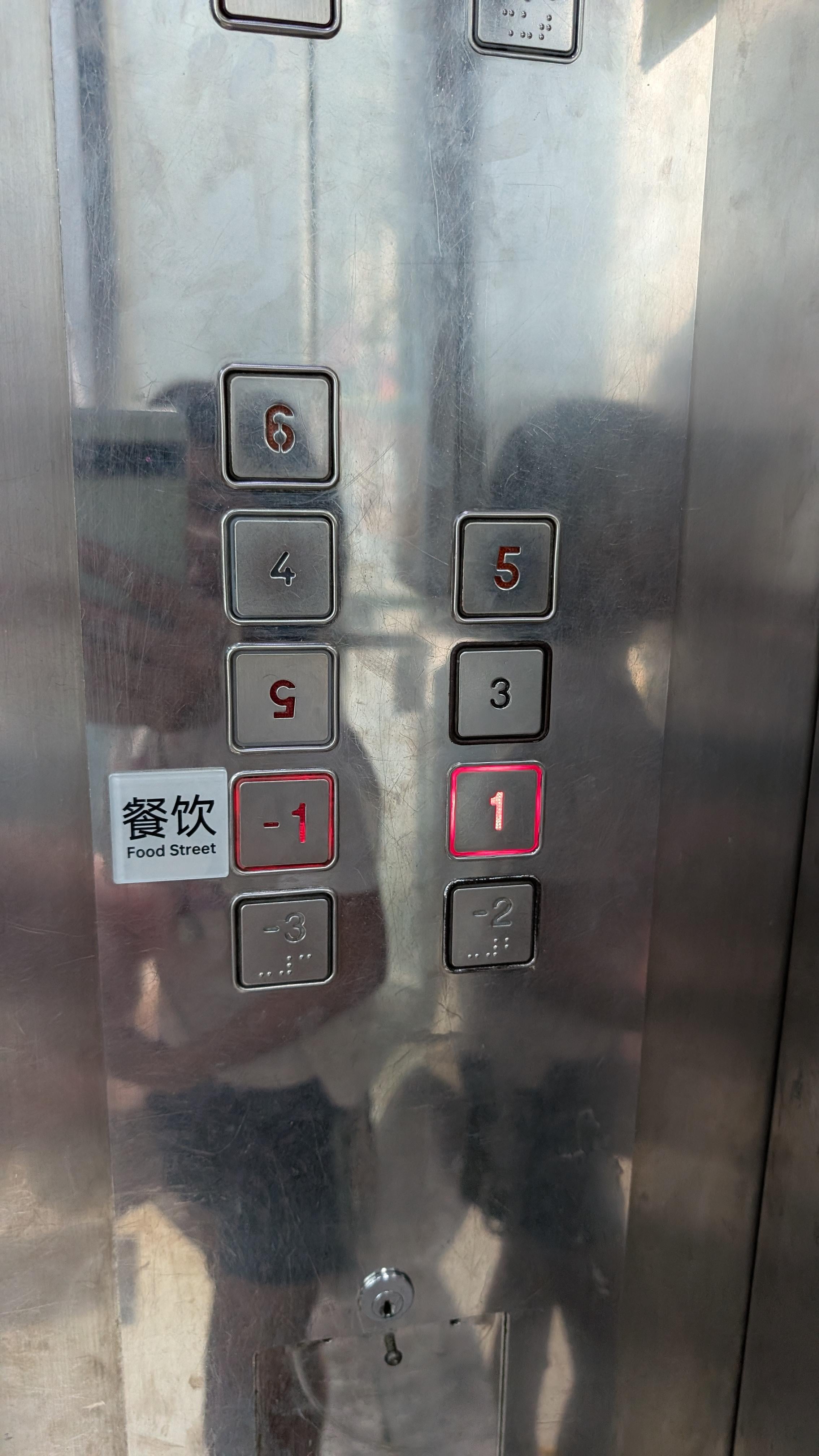 Lift buttons in an electronics department building in China