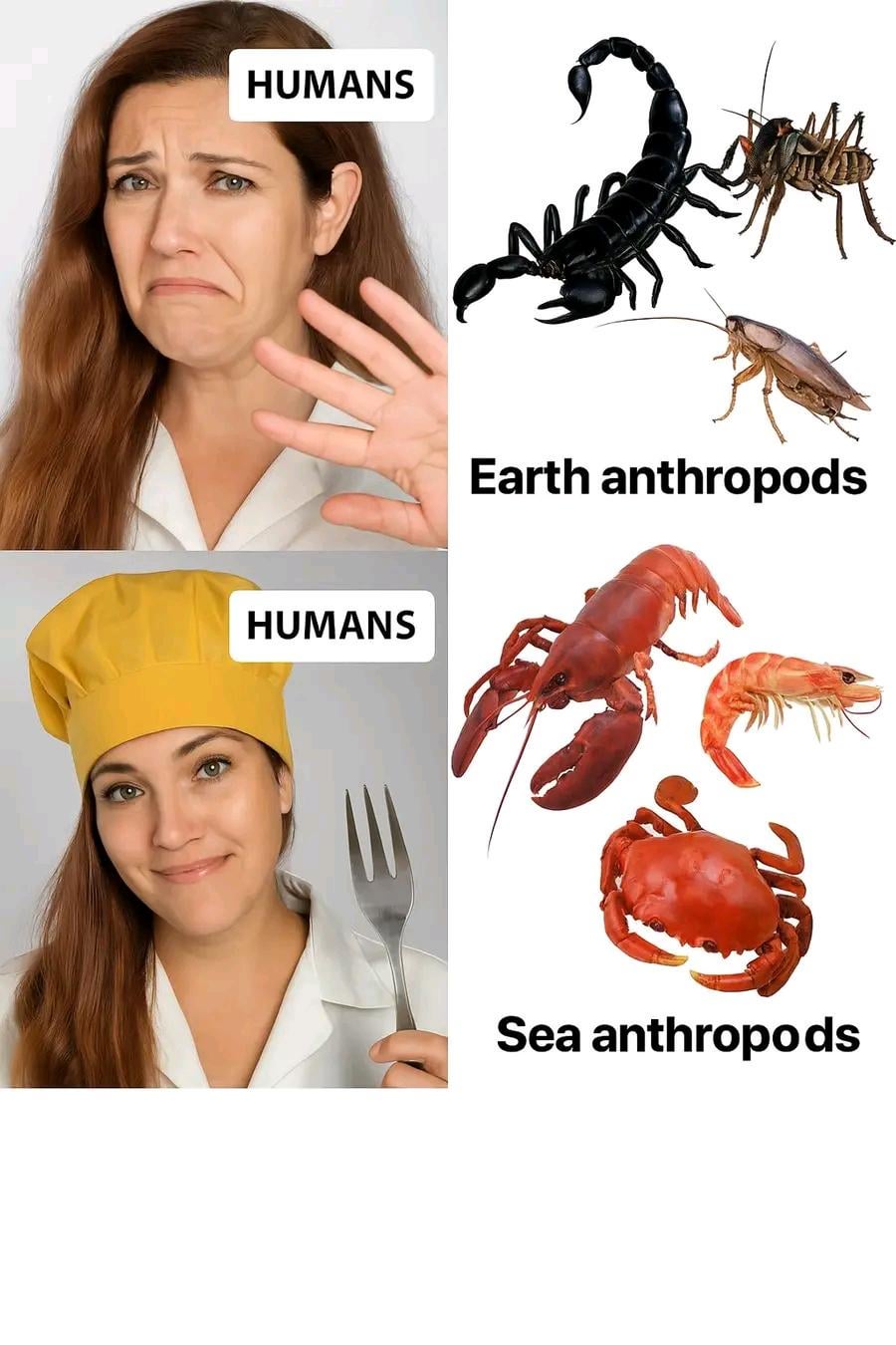 Funny how we scream at one and pay extra for the others 🦀 😂