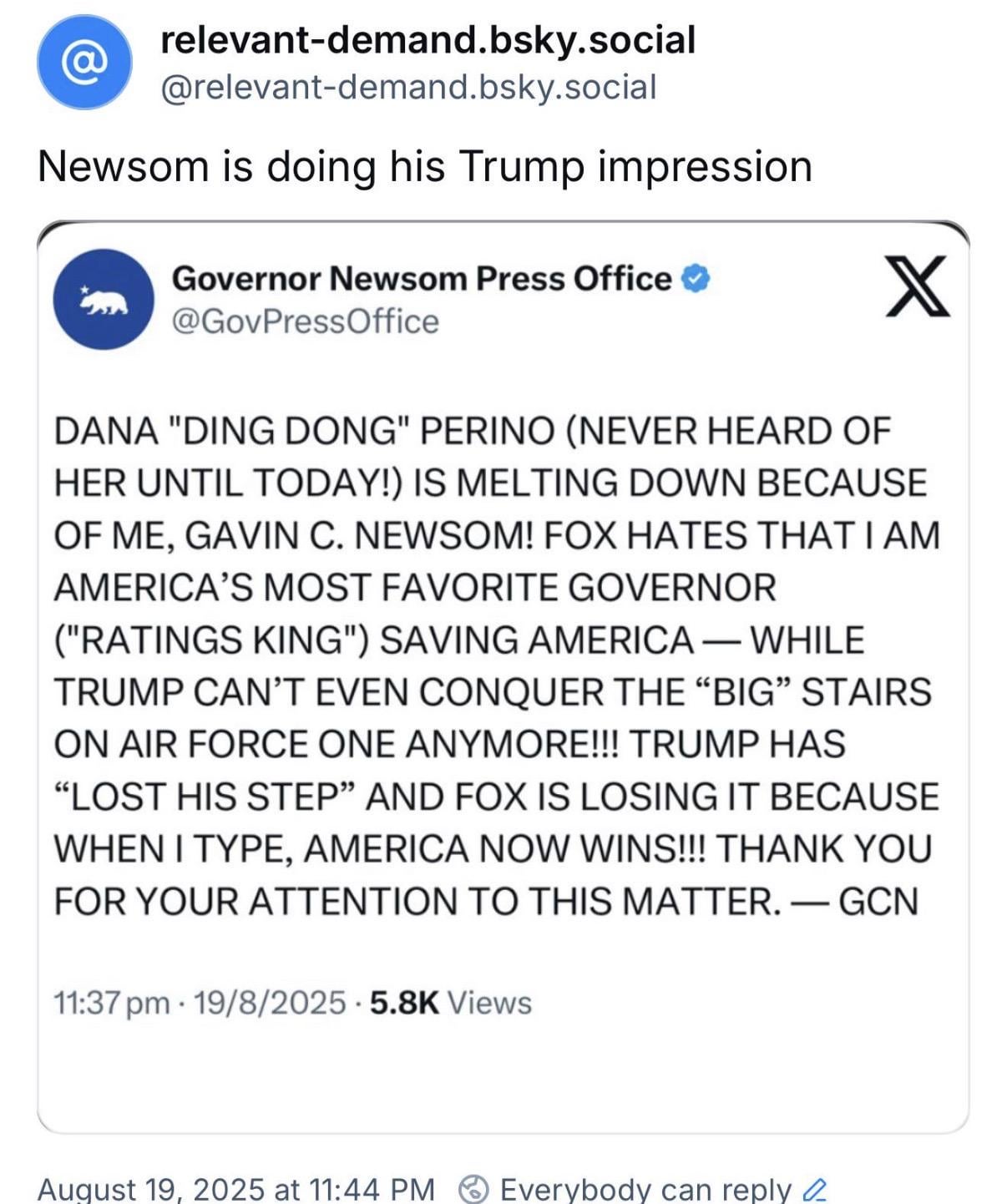 Newsom's portrayal of Trump