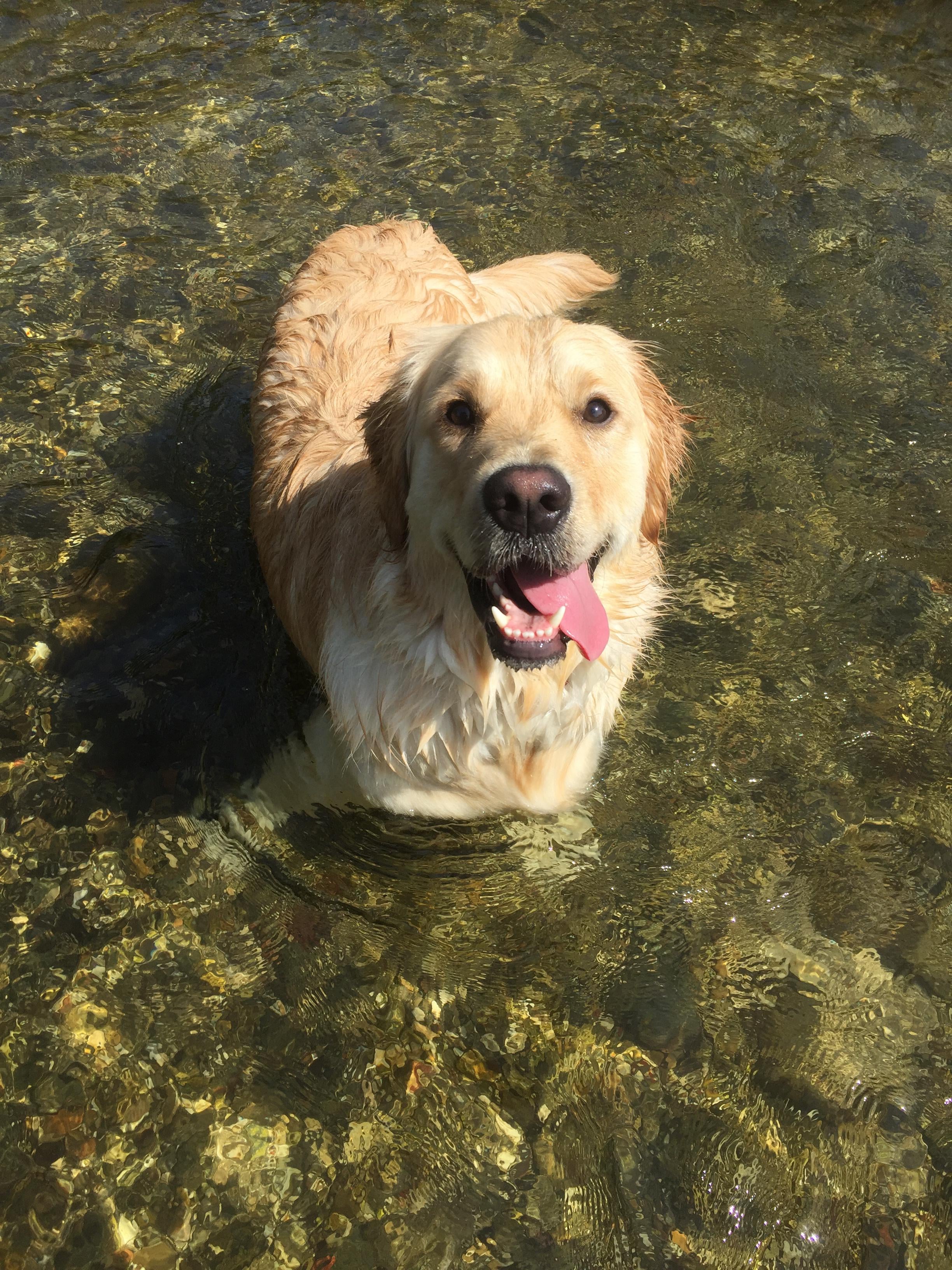 Milo really loves playing in the river