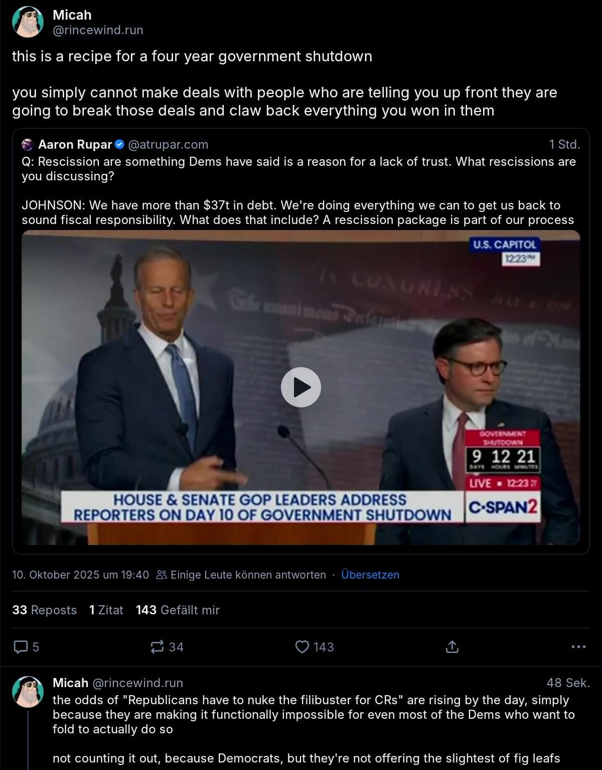 If they’re going to use this tactic then no one should vote for the bill ever. Keep it shut down!
