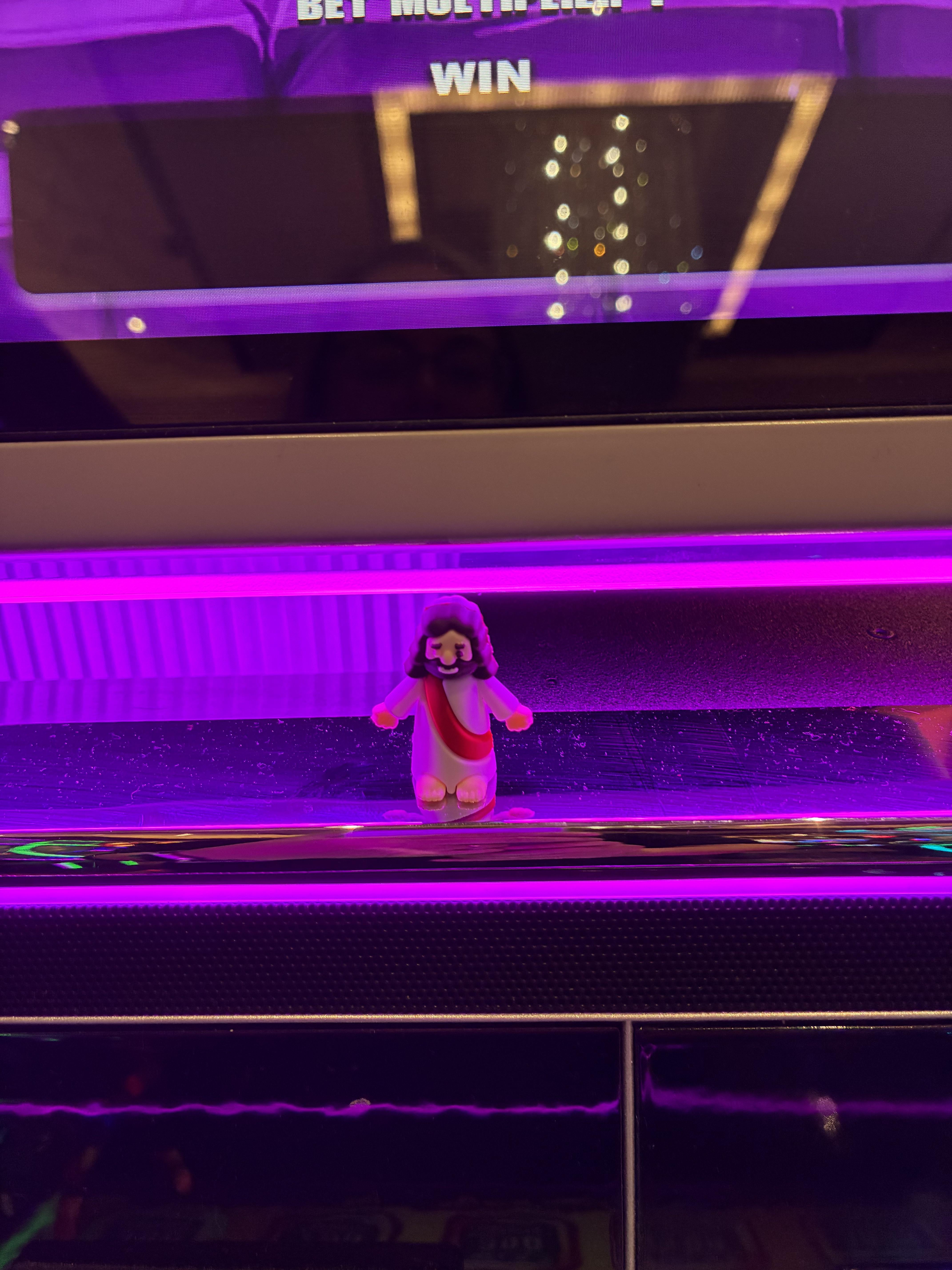 Saw a tiny Jesus on a slot machine at the casino. Did not help me win….