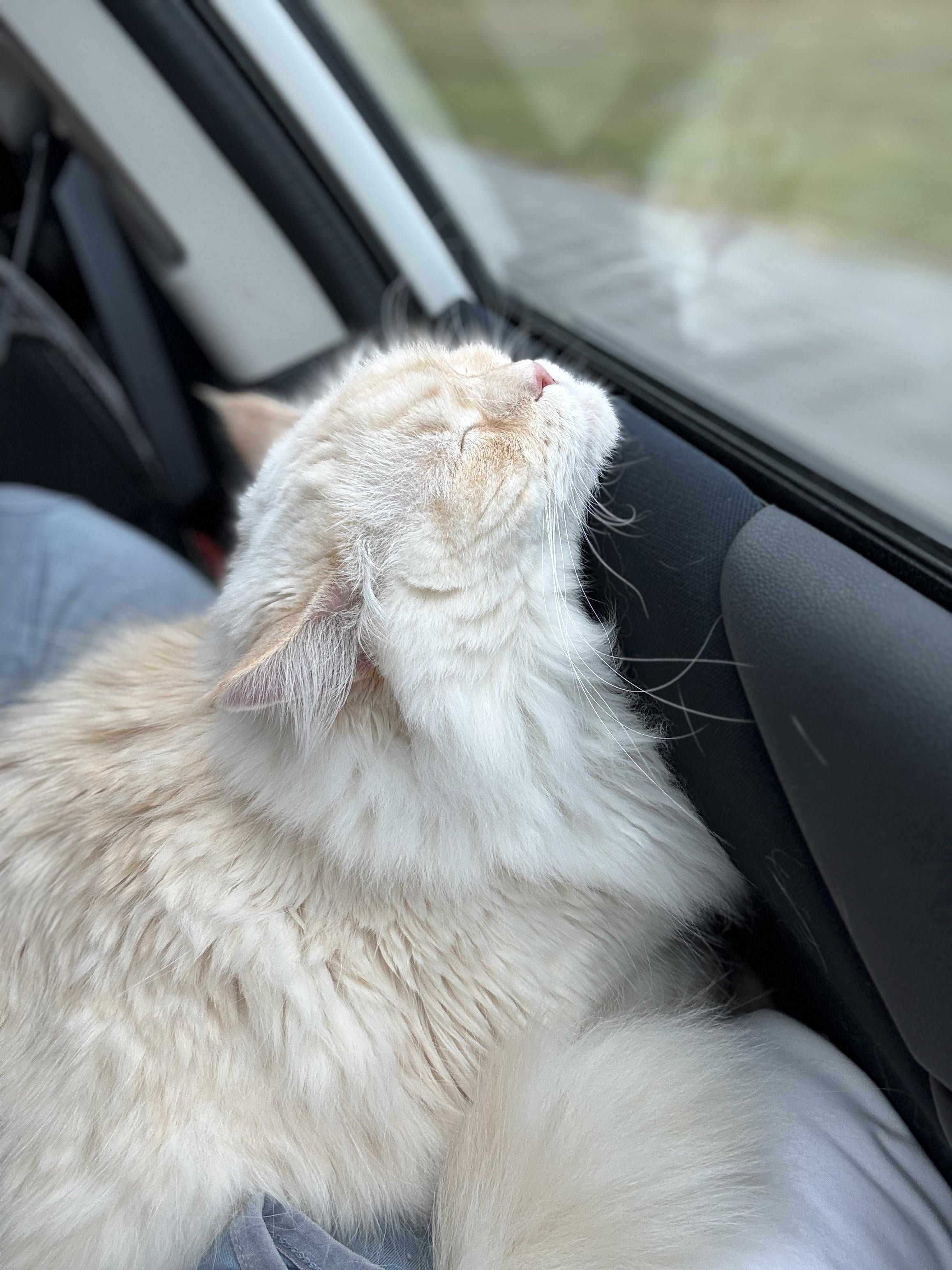 How my little guy sleeps during long car rides.