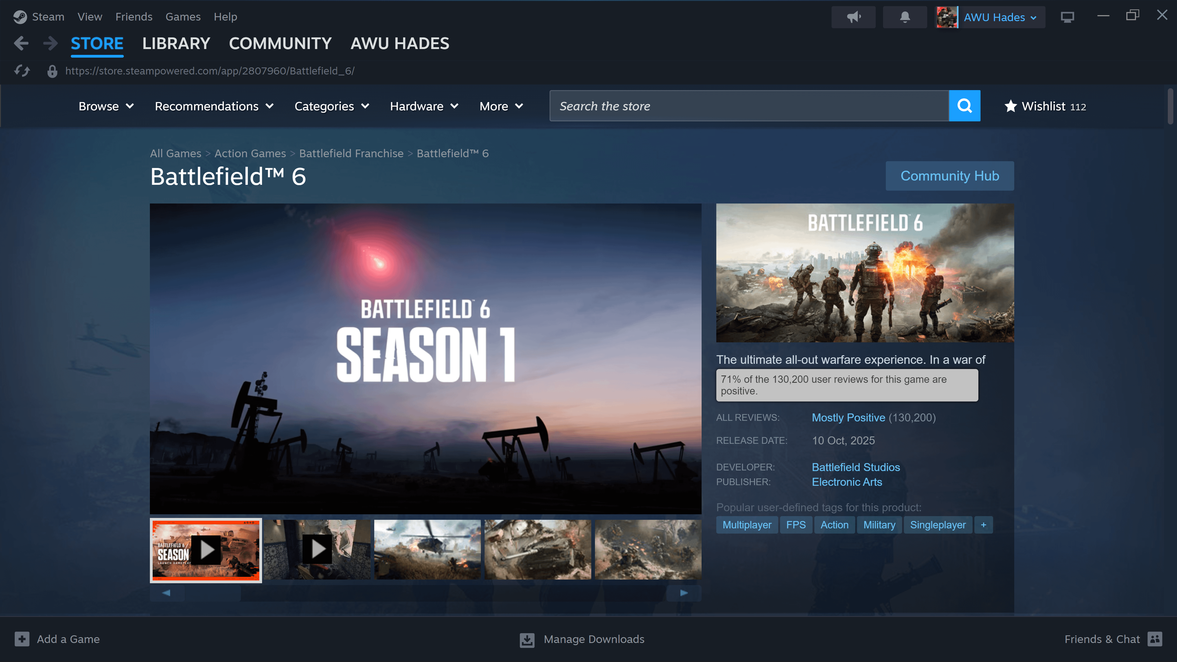 Battlefield 6 ratings are dropping, from 76% on Steam last sunday to 71% today. It's only 2% away from a mixed reception now