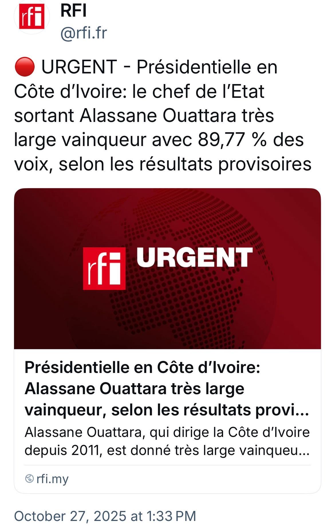 Côte d’Ivoire election results
