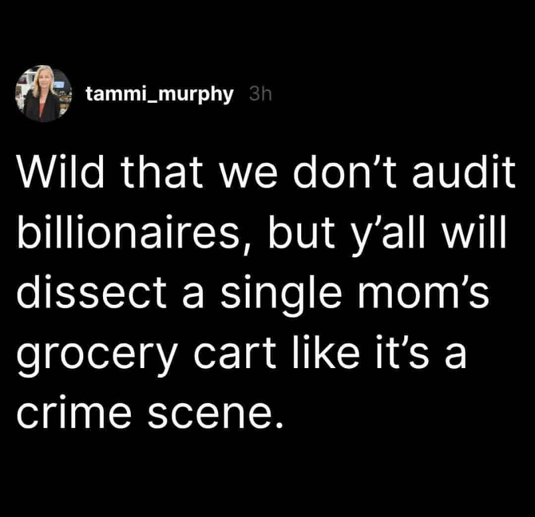 Corporation that rips you off good, people doing grocery shopping bad