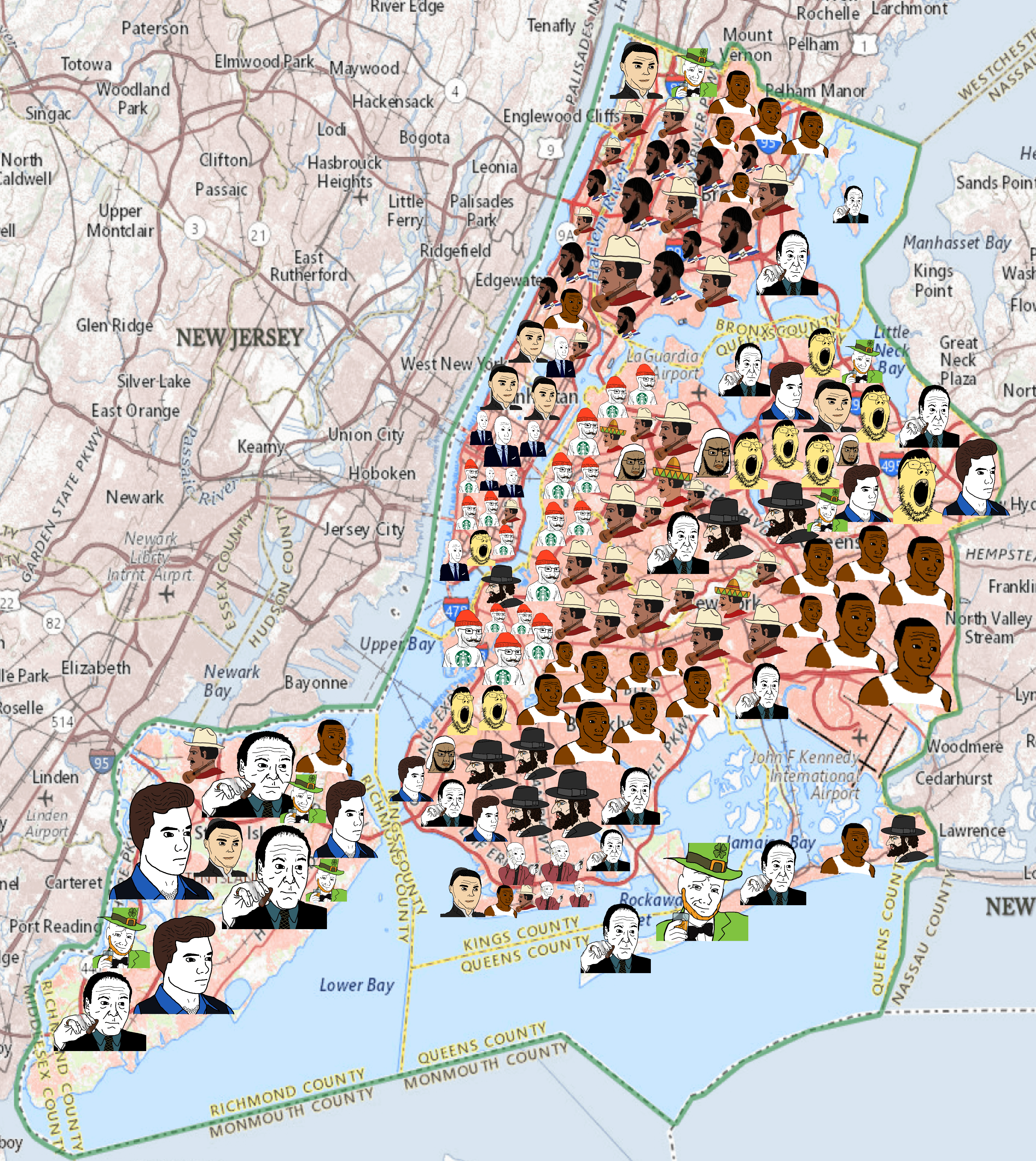 The demographics of New York City represented by Wojaks