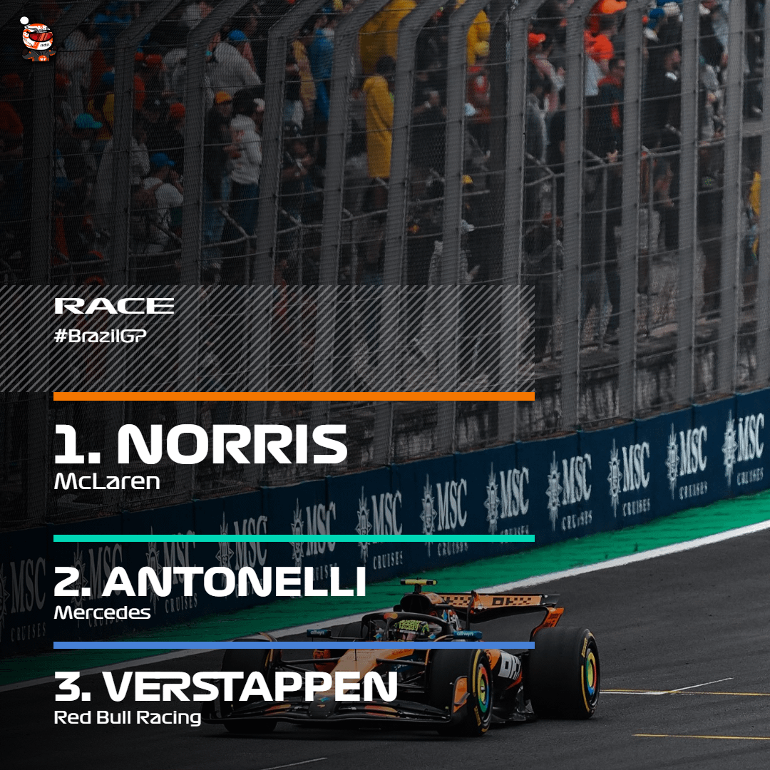 Lando Norris wins the 2025 São Paulo Grand Prix. Antonelli P2, Verstappen P3!
