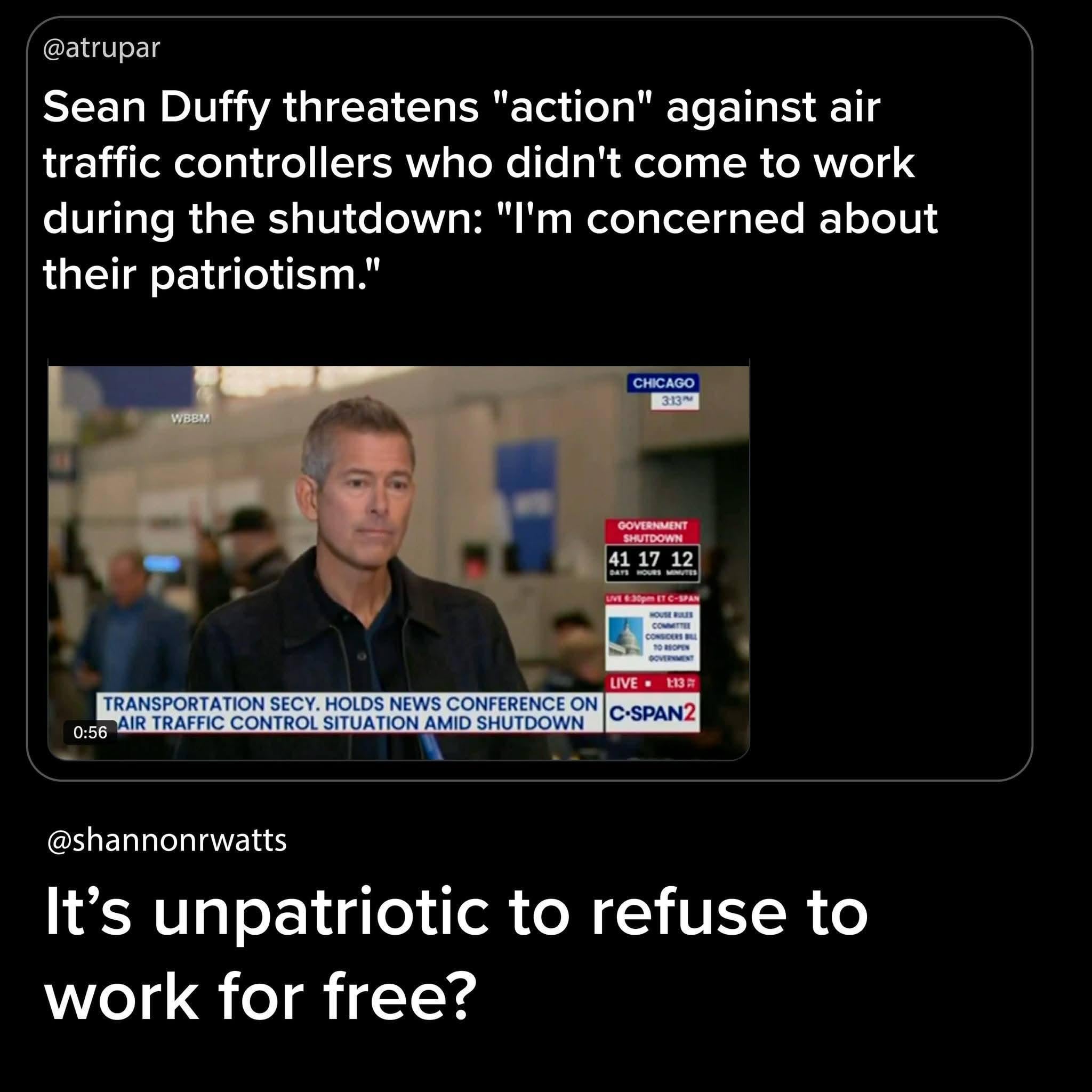 Threatens Unpaid Worker Patriotism