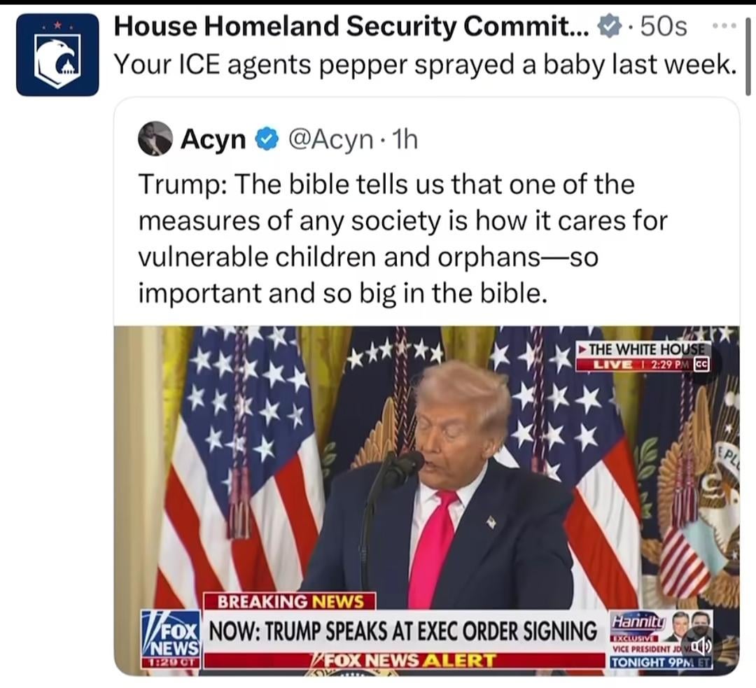 Trump Cites Bible on Orphans. ICE Cites Pepper Spray on Baby.