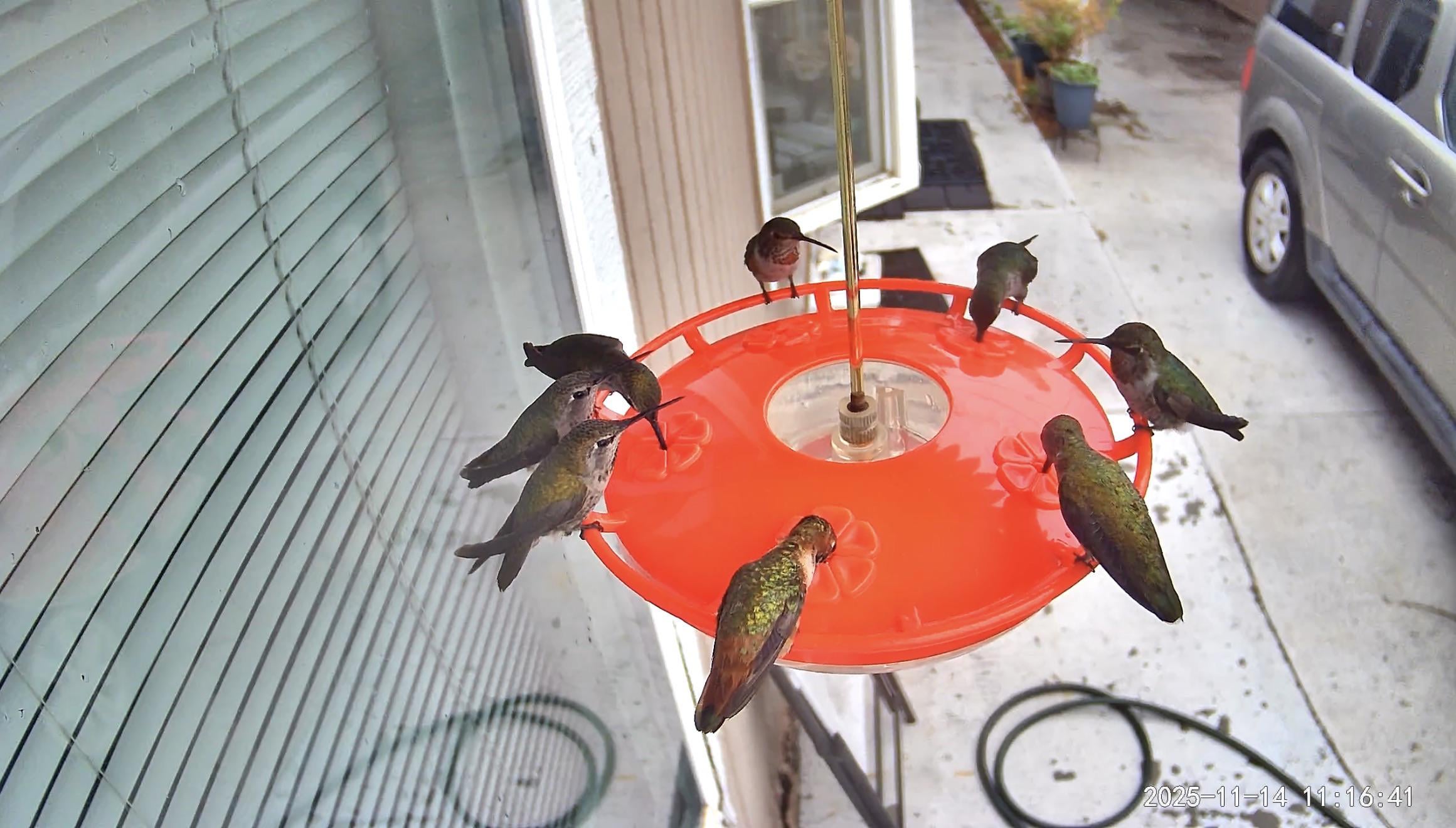 This morning I put my largest rain shield on the most accessible feeder… the hummingbirds put aside their differences and sheltered together. 🥹