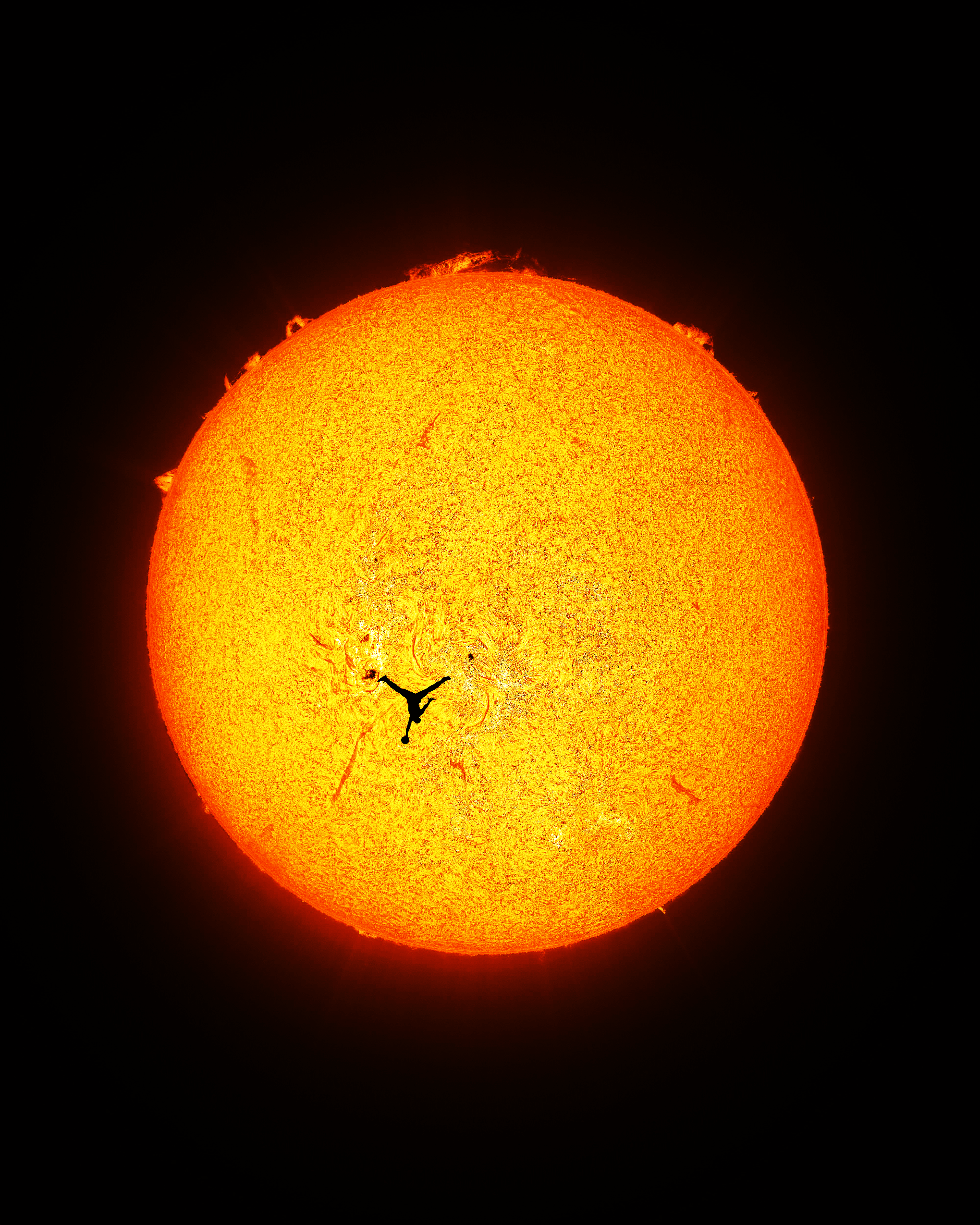 I captured a photo of my friend in freefall in front of the sun. More in the comments!