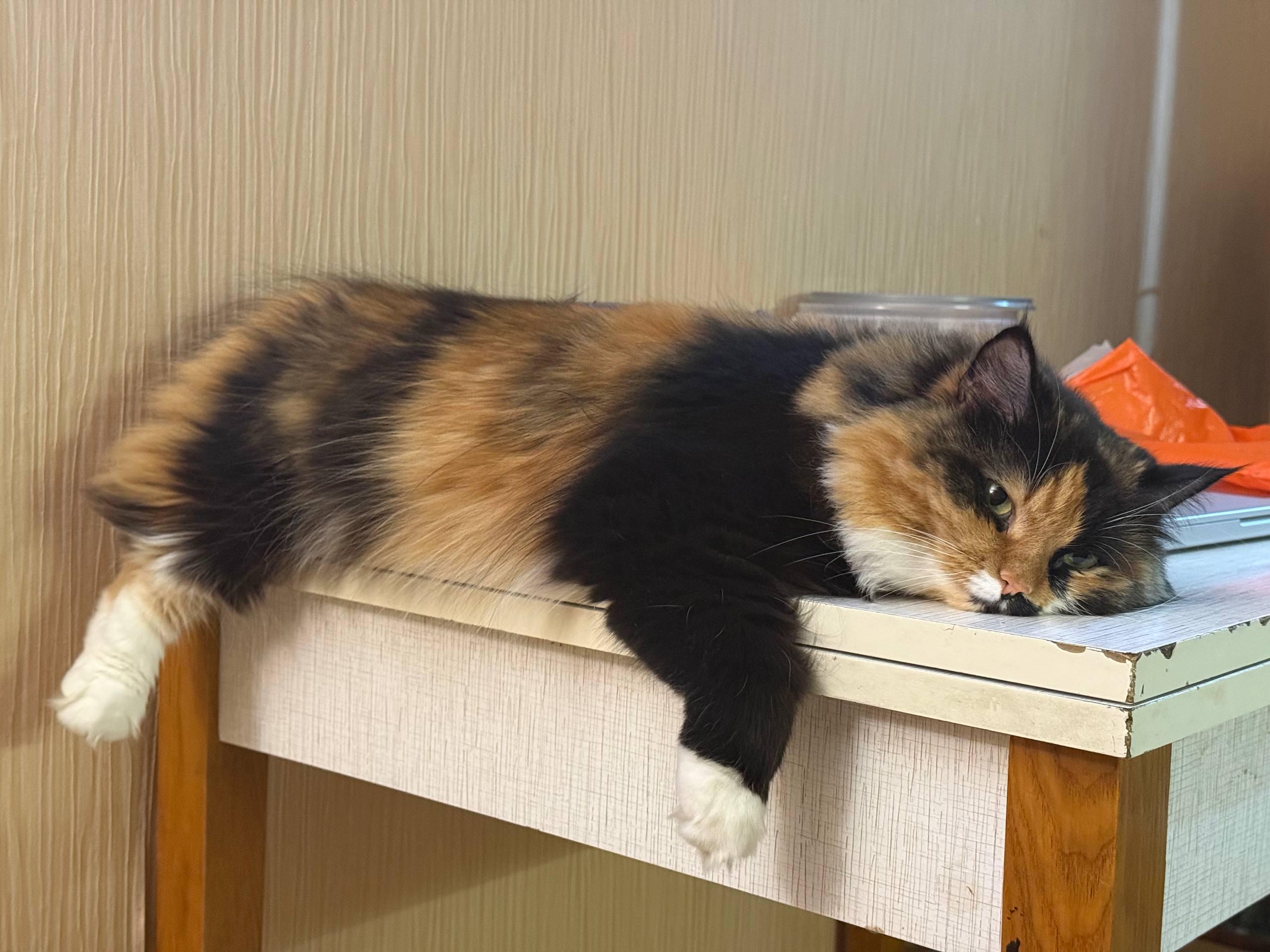 My cat tried all the ways of night rampage and in the morning lay down in this position and fell asleep.
