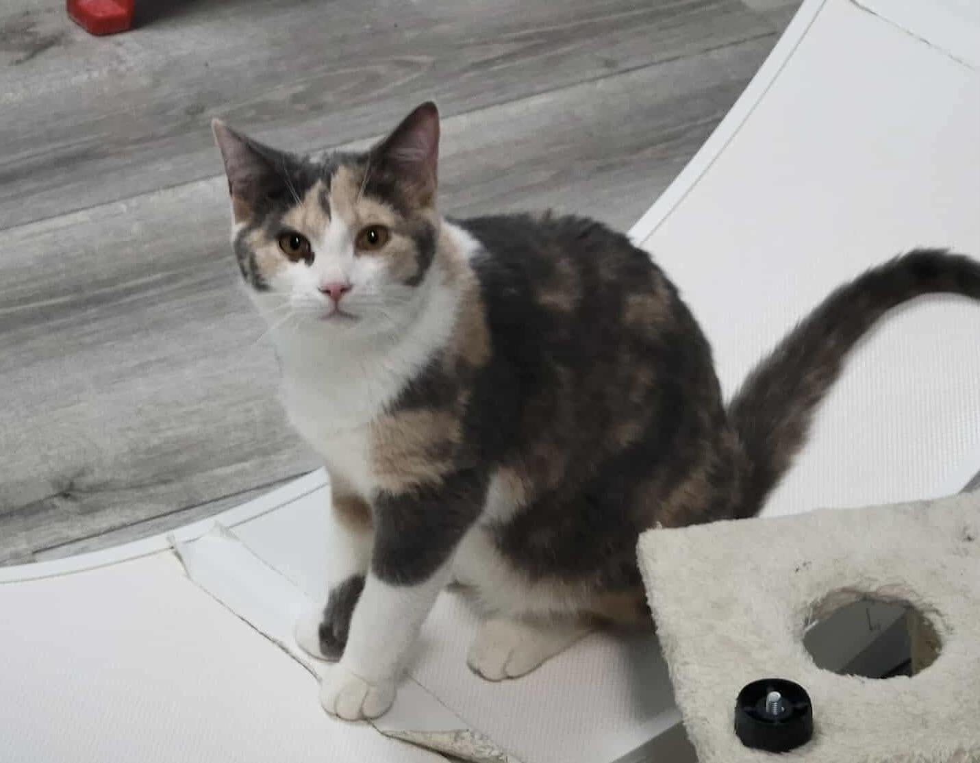 The cute Chou (Cabbage) from our shelter. I think I disturbed her wheel training.