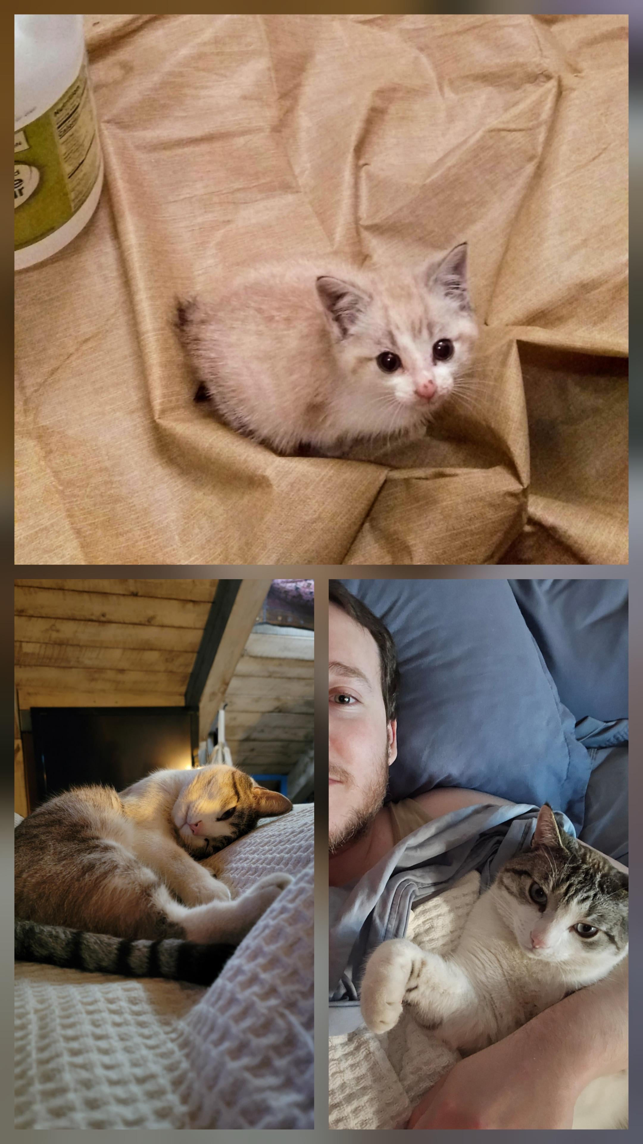 Milo Then, Milo Now. Rescue Cat.