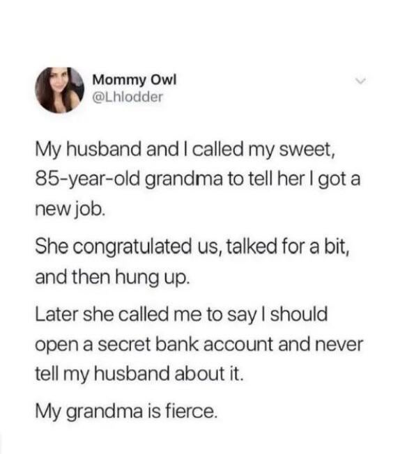 My 85-year-old grandma looking out for me