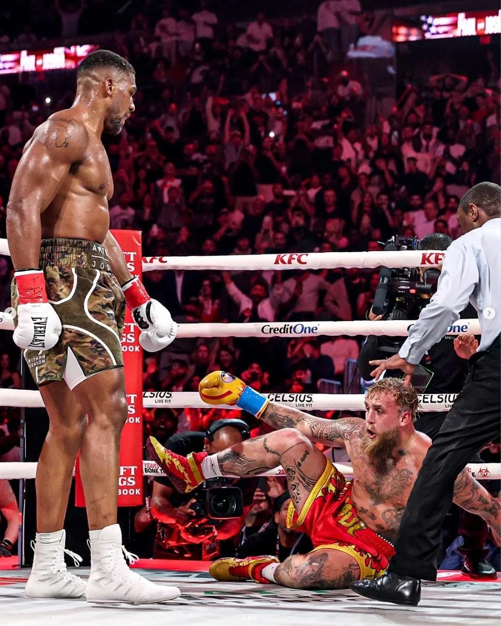 A photo of Anthony Joshua knocking out Jake Paul.