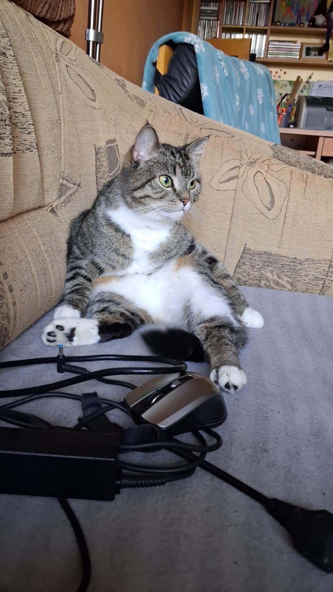 My cat sits like he pays rent