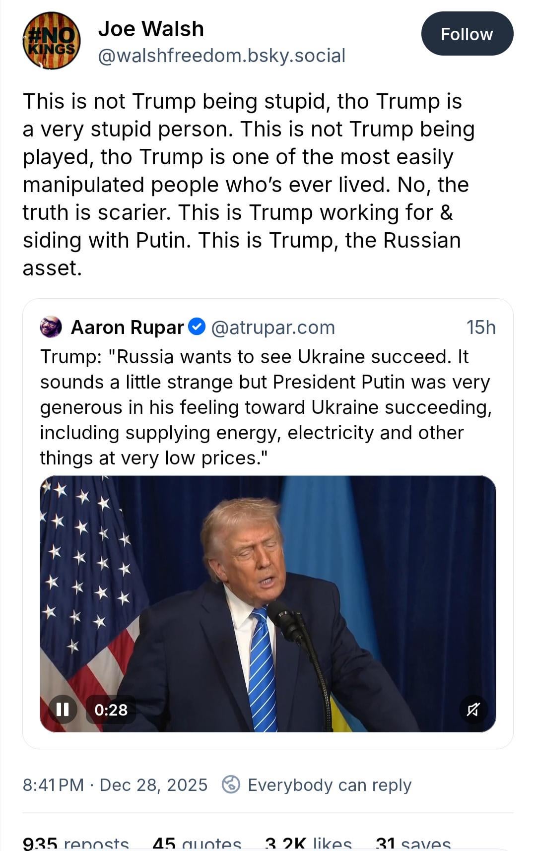 Tho Trump is very stupid, this is Trump being a Russian Asset