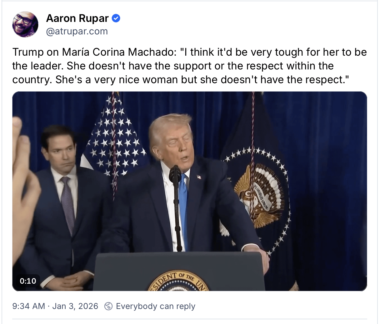 So after dedicating the Nobel Peace Prize to him for his support, this is how he rewards Machado back. Can't say I'm surprised.