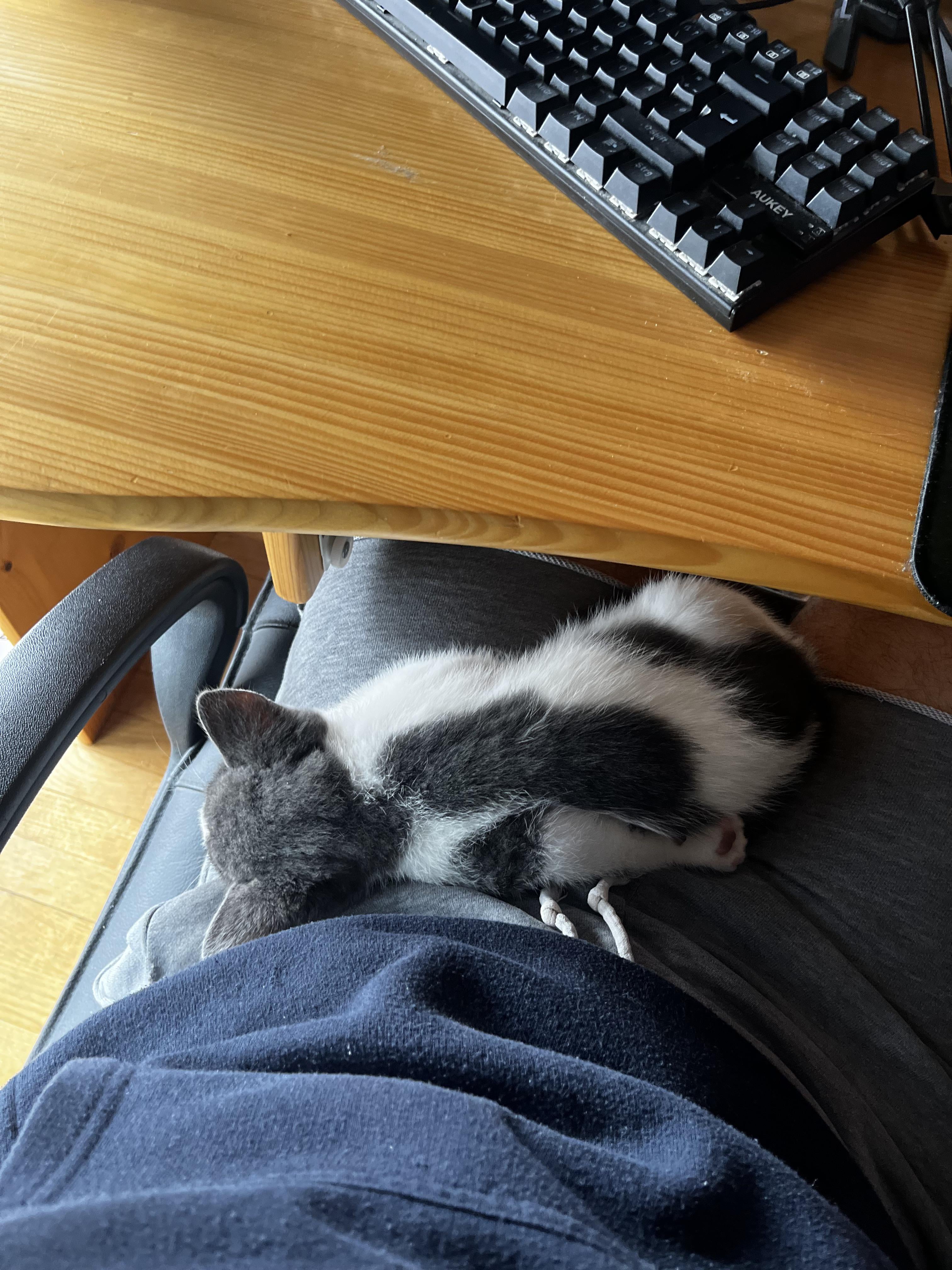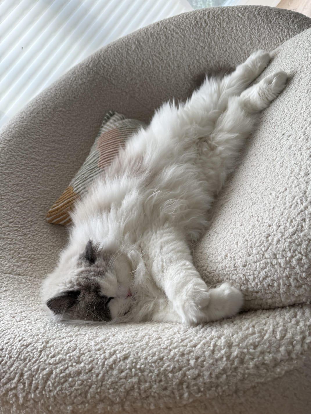 This kitten is sleeping so comfortably.