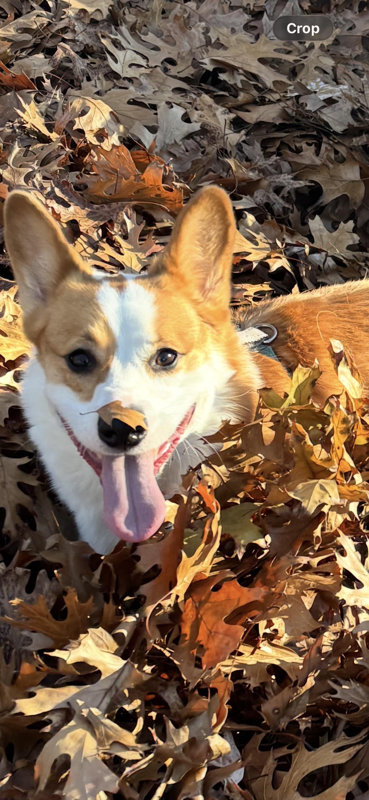 He hav a leaf on him nose