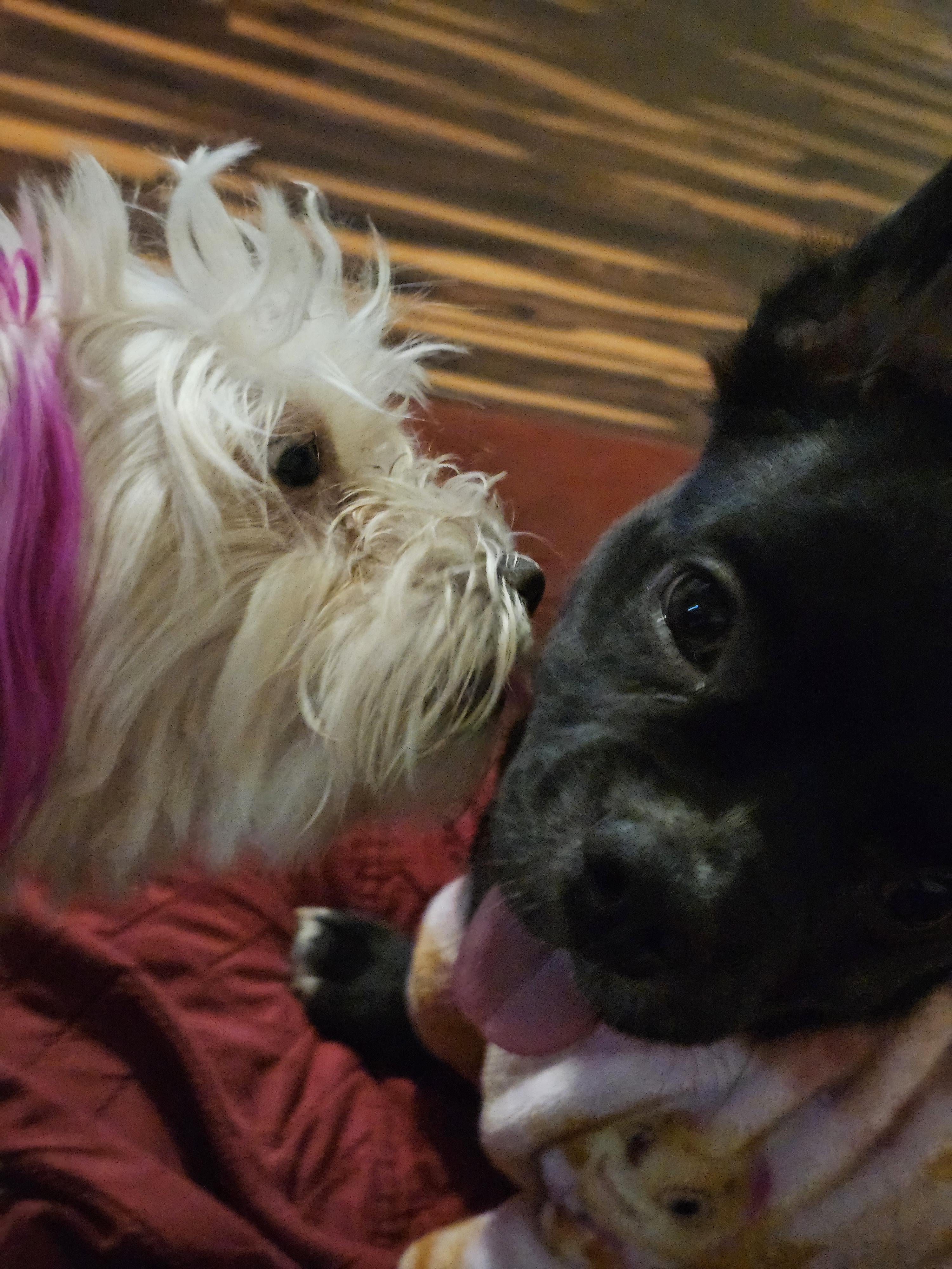 Boba (2.5y) is giving her sister Miso (5m) kisses.