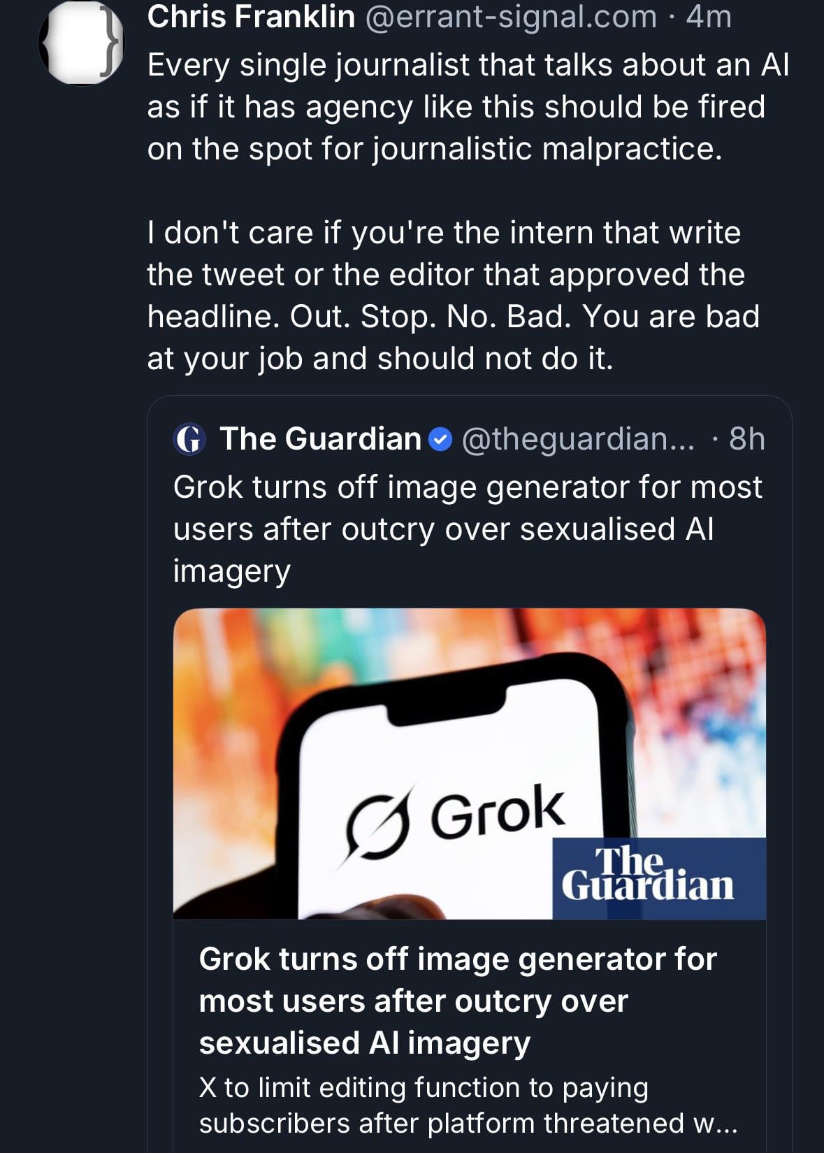 Love how the fourth estate and world governments are just letting “Elon Musk made a program that generates CSAM” pass on by, doing everything to let Musk off the hook