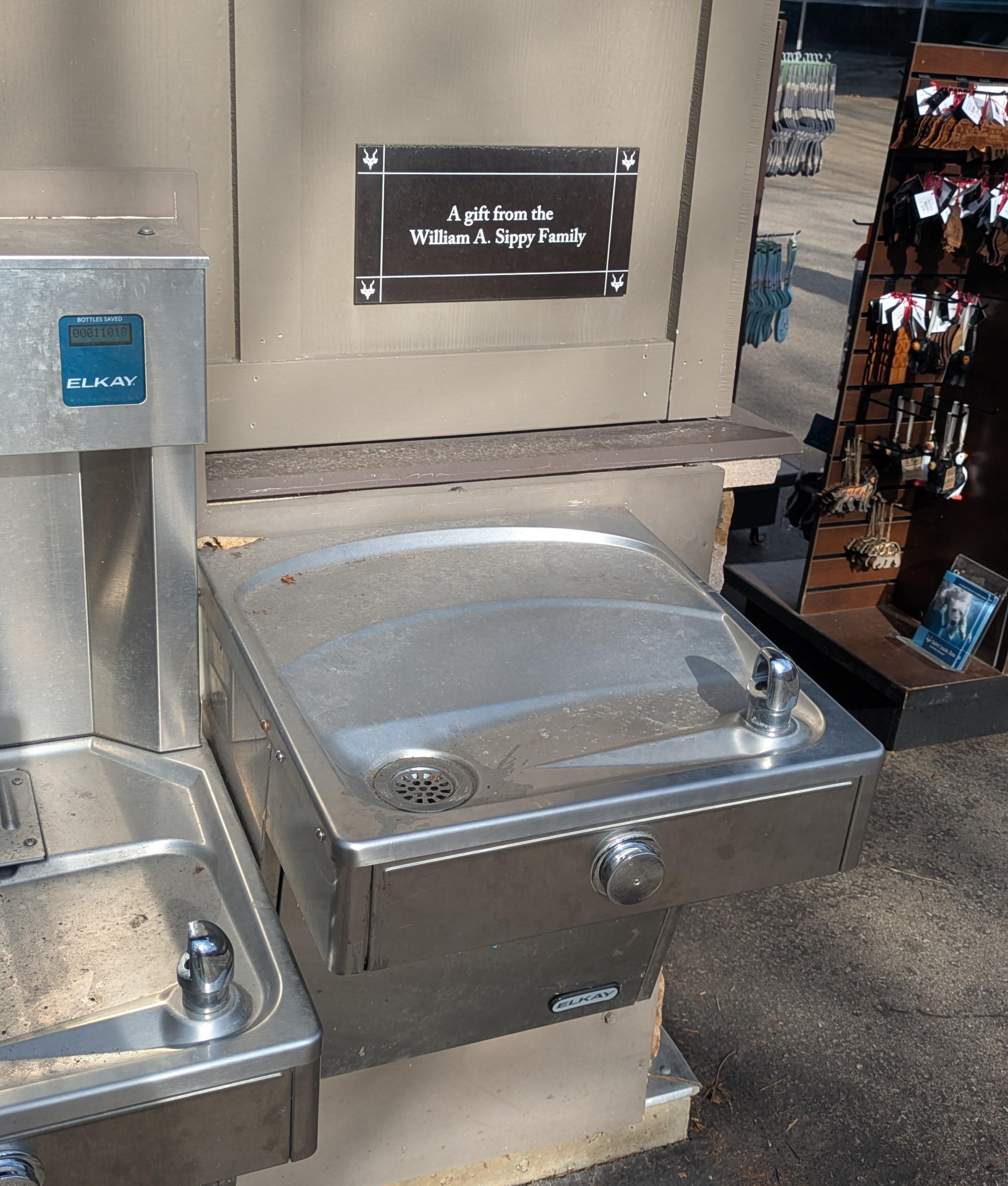 A water fountain gifted by someone named Sippy