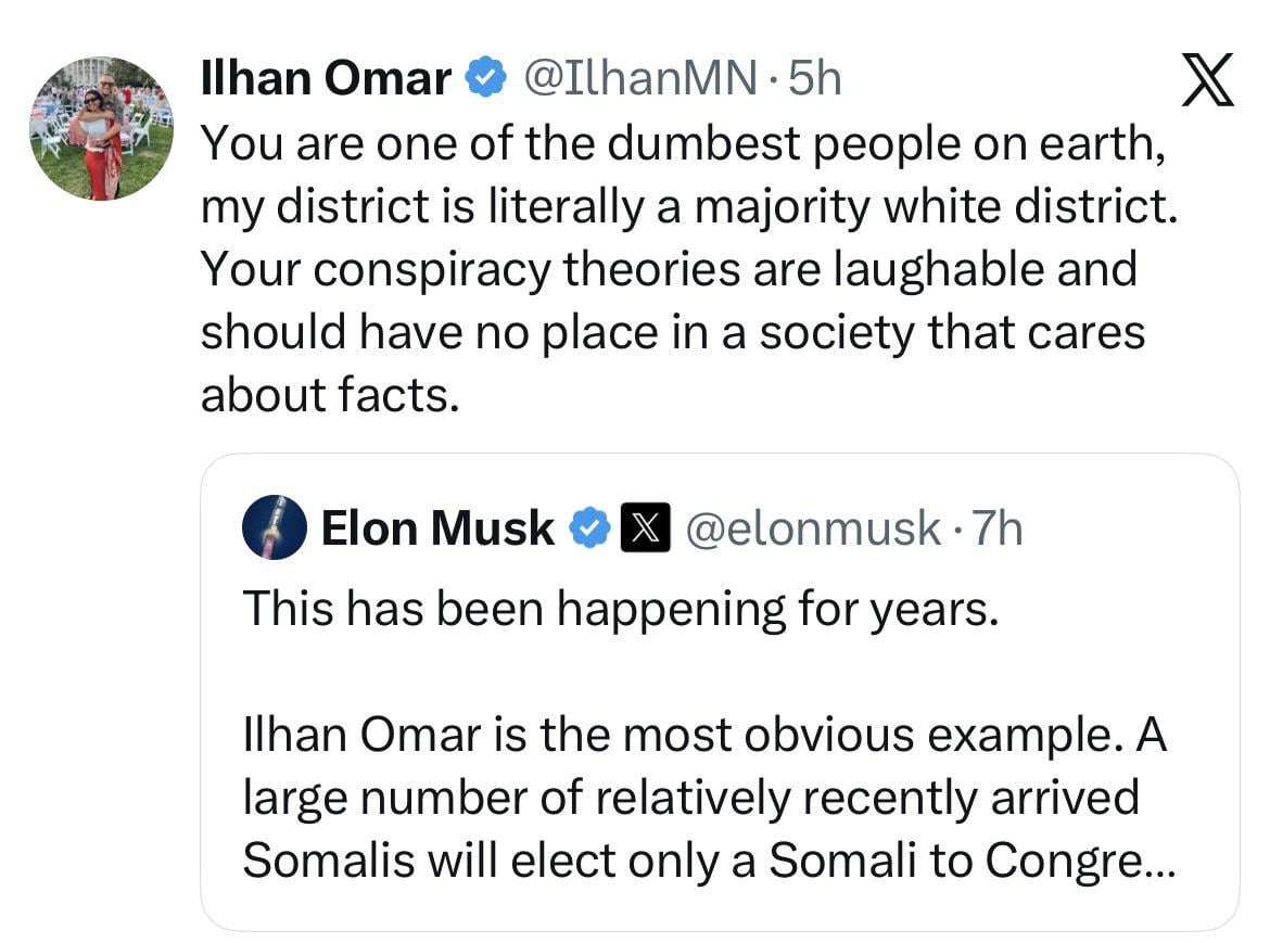 Congressmember Ilhan Omar on Elon Musk, today on Twitter