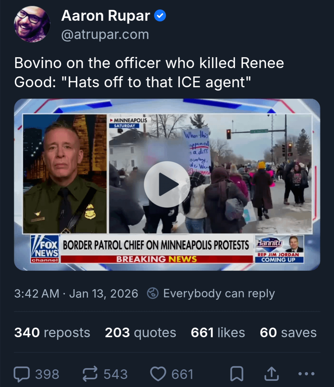 Bovino on the officer who killed Renee Good: "Hats off to that ICE agent"