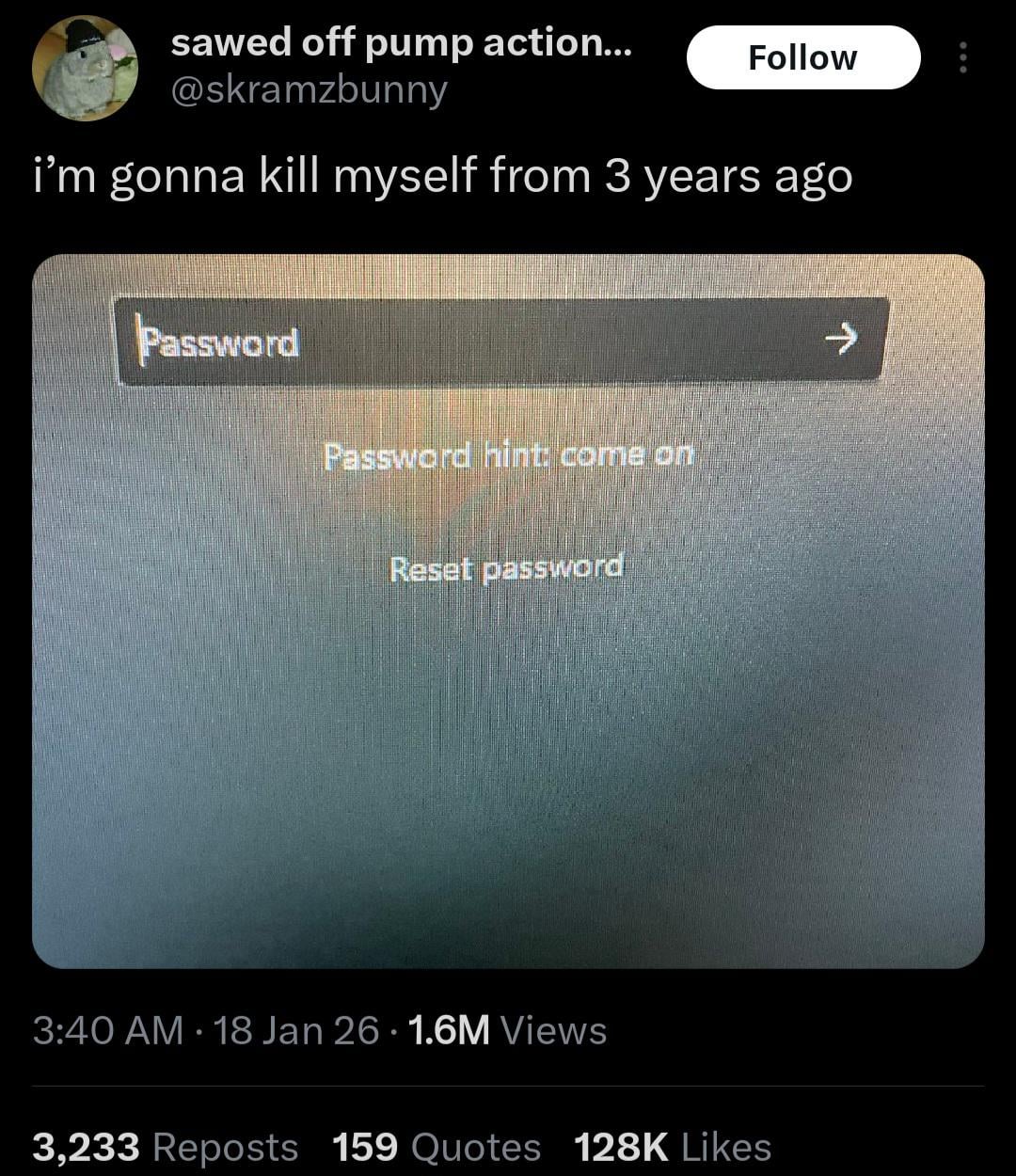 And that's why you always write down your your passwords: