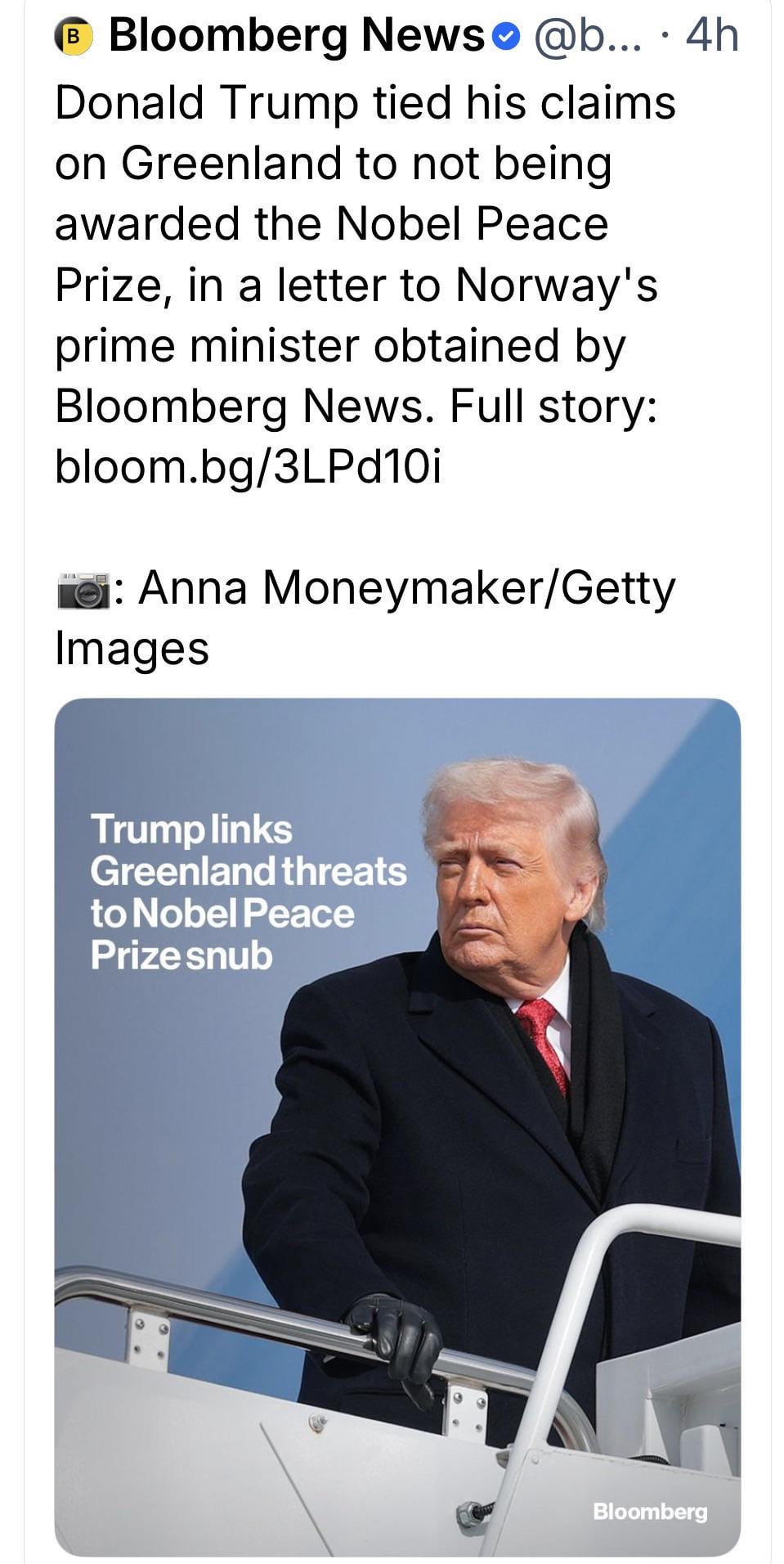 Threatening Greenland to force Norway to give him a Nobel?