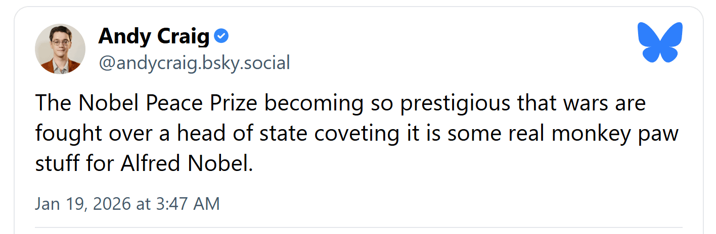So Nobel Peace Prize may now be responsible for starting WWIII ...?