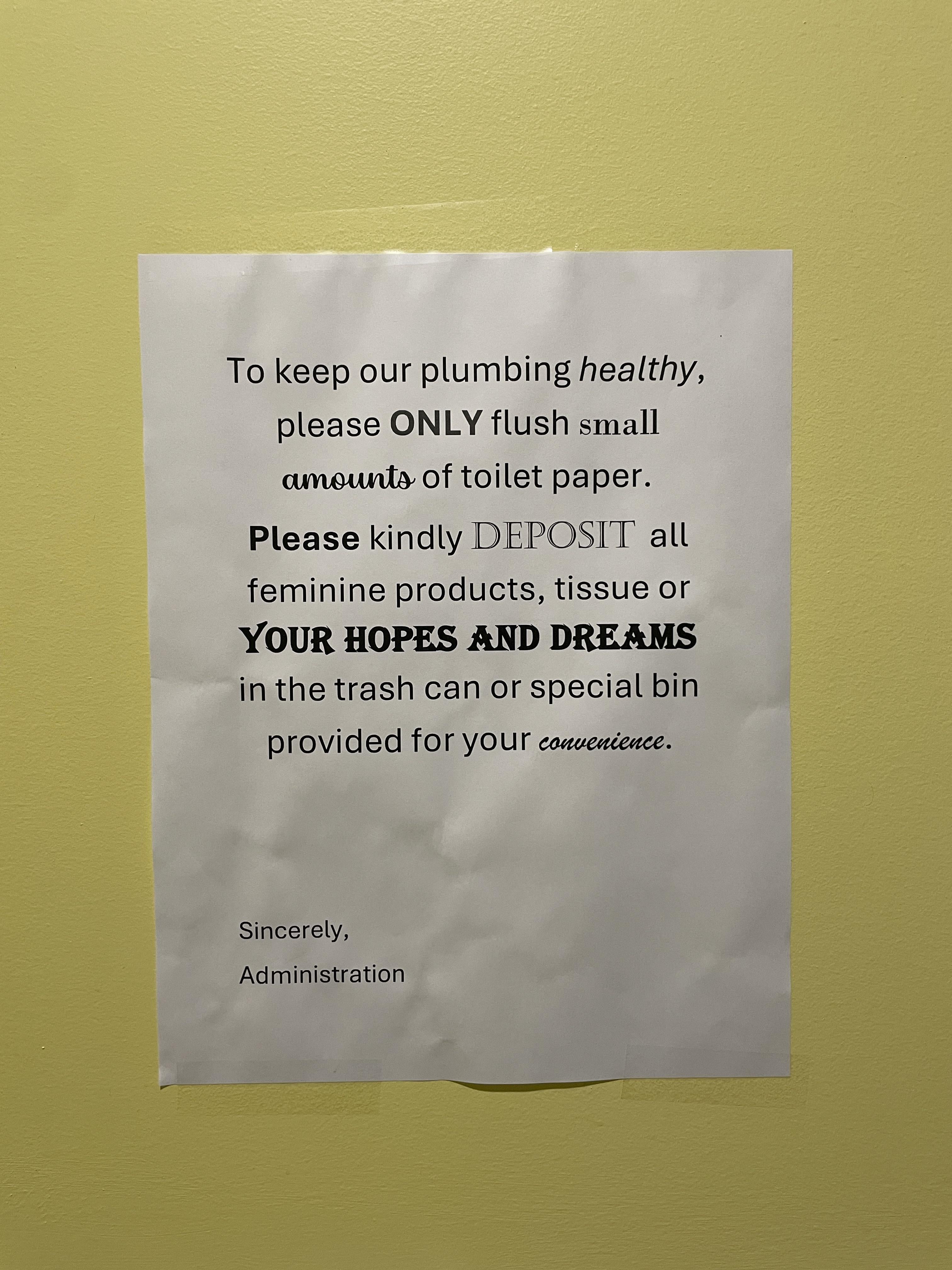 Sign that was hung up in our urgent care bathroom