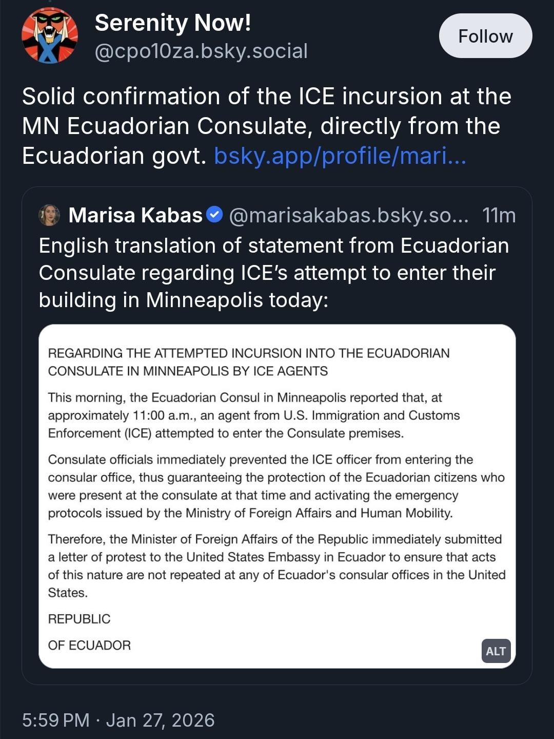 MN Ecuadorian Consulate responds to ICE's attempt to make entry