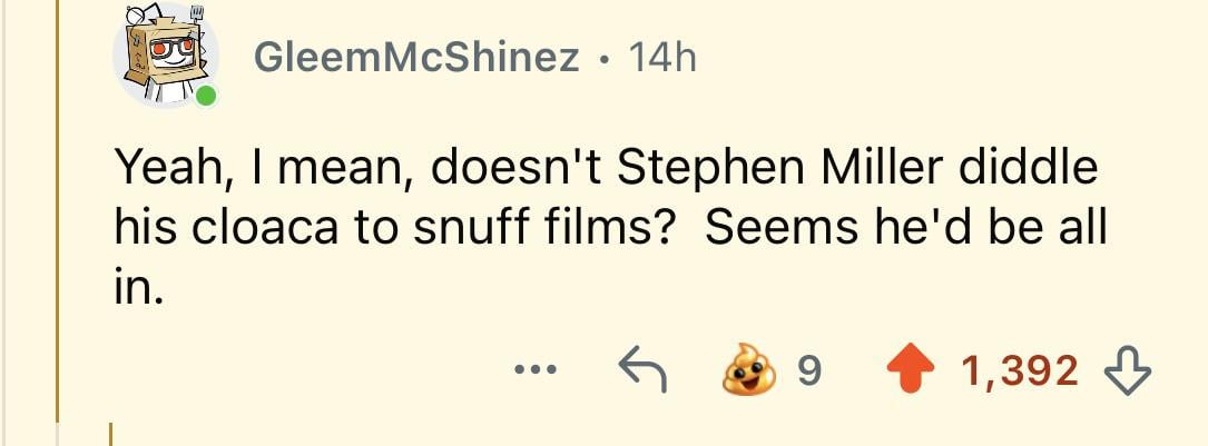 Stephen Miller diddles his cloaca