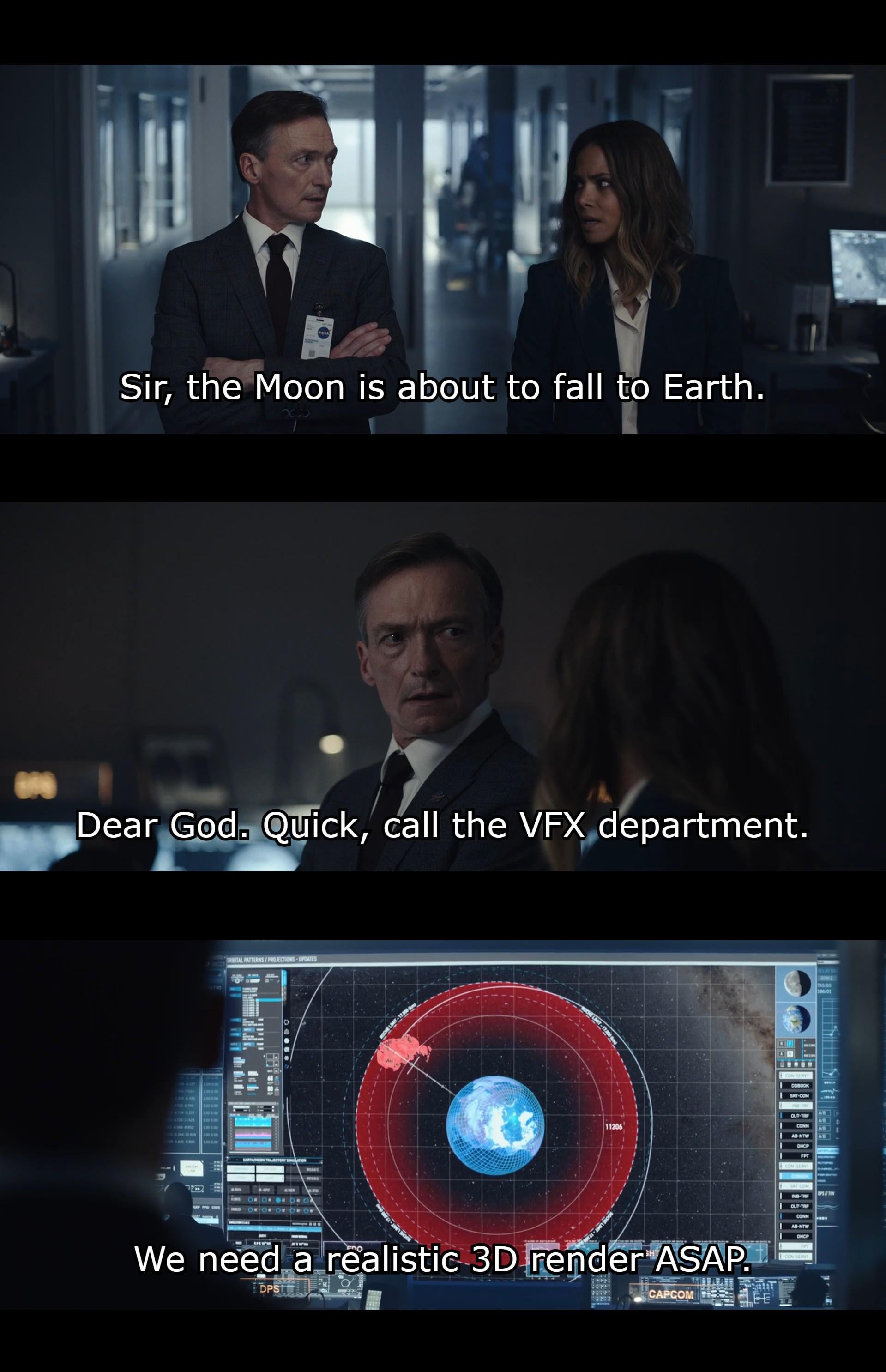 Disaster movie joke (Moonfall specifically)