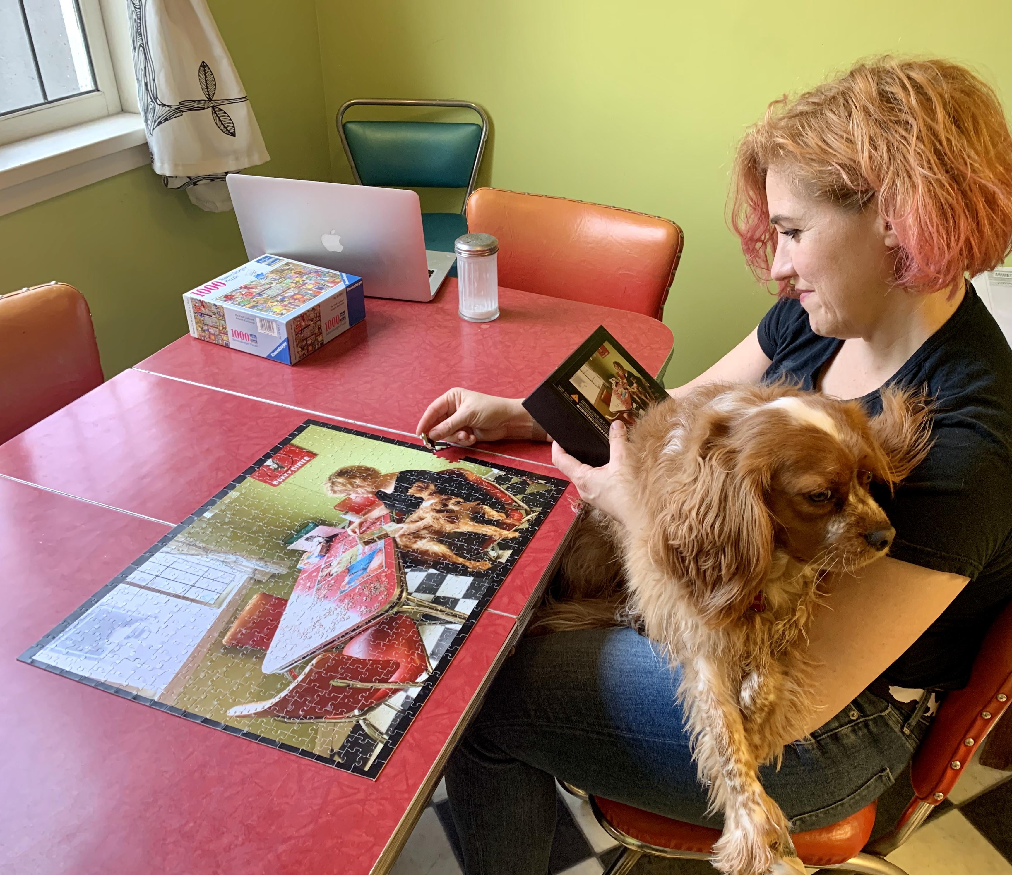 the kids made a puzzle of me doing a puzzle- with the dog on my lap-which I then did- with the dog on my lap (OC)