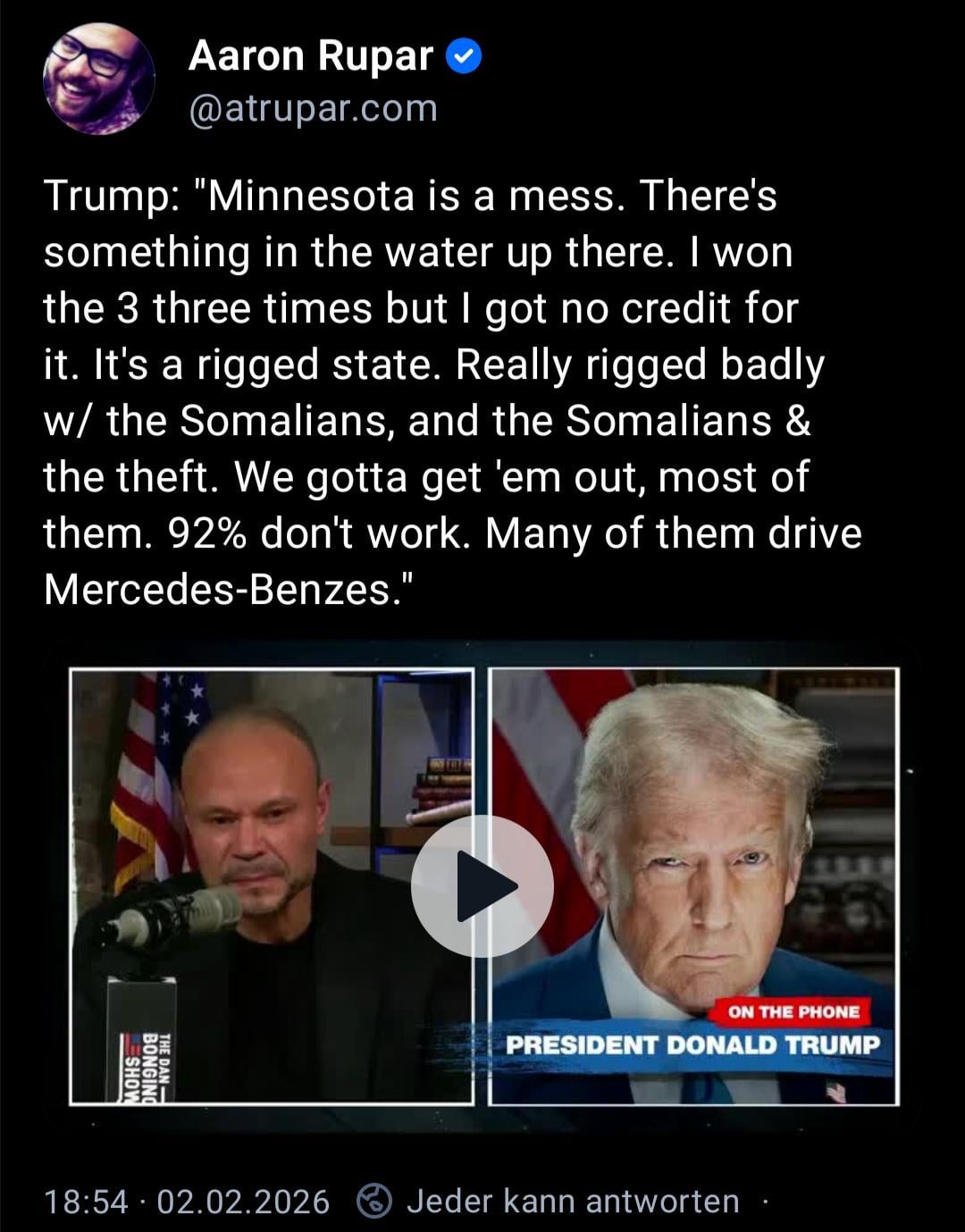 His mind is completely broken, only the hateful and racist bits still work!
