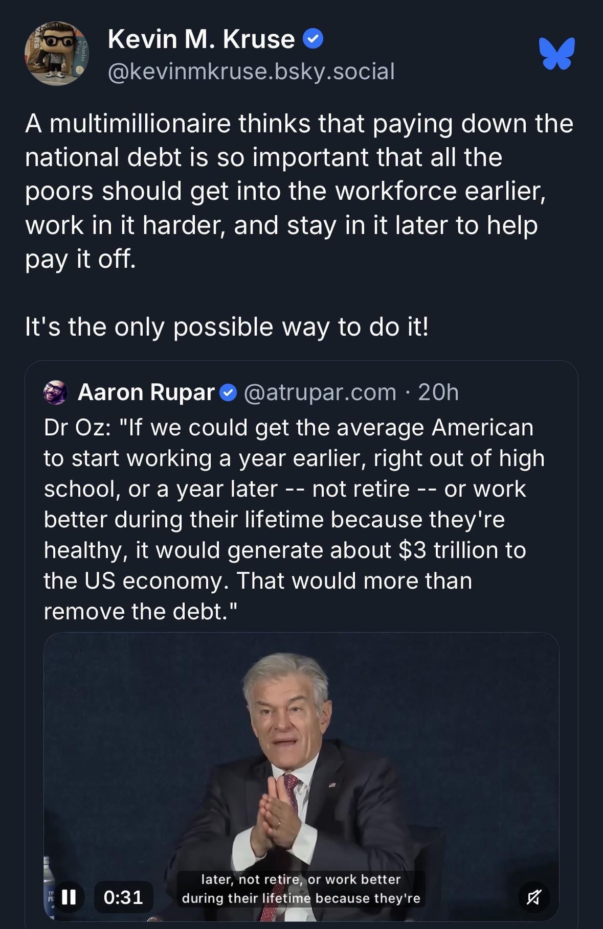 Millionaire servant to billionaires thinks our problem is we don’t work hard enough! They insist that the only way to pay off the national debt is off of our backs, while people like him pay nothing.