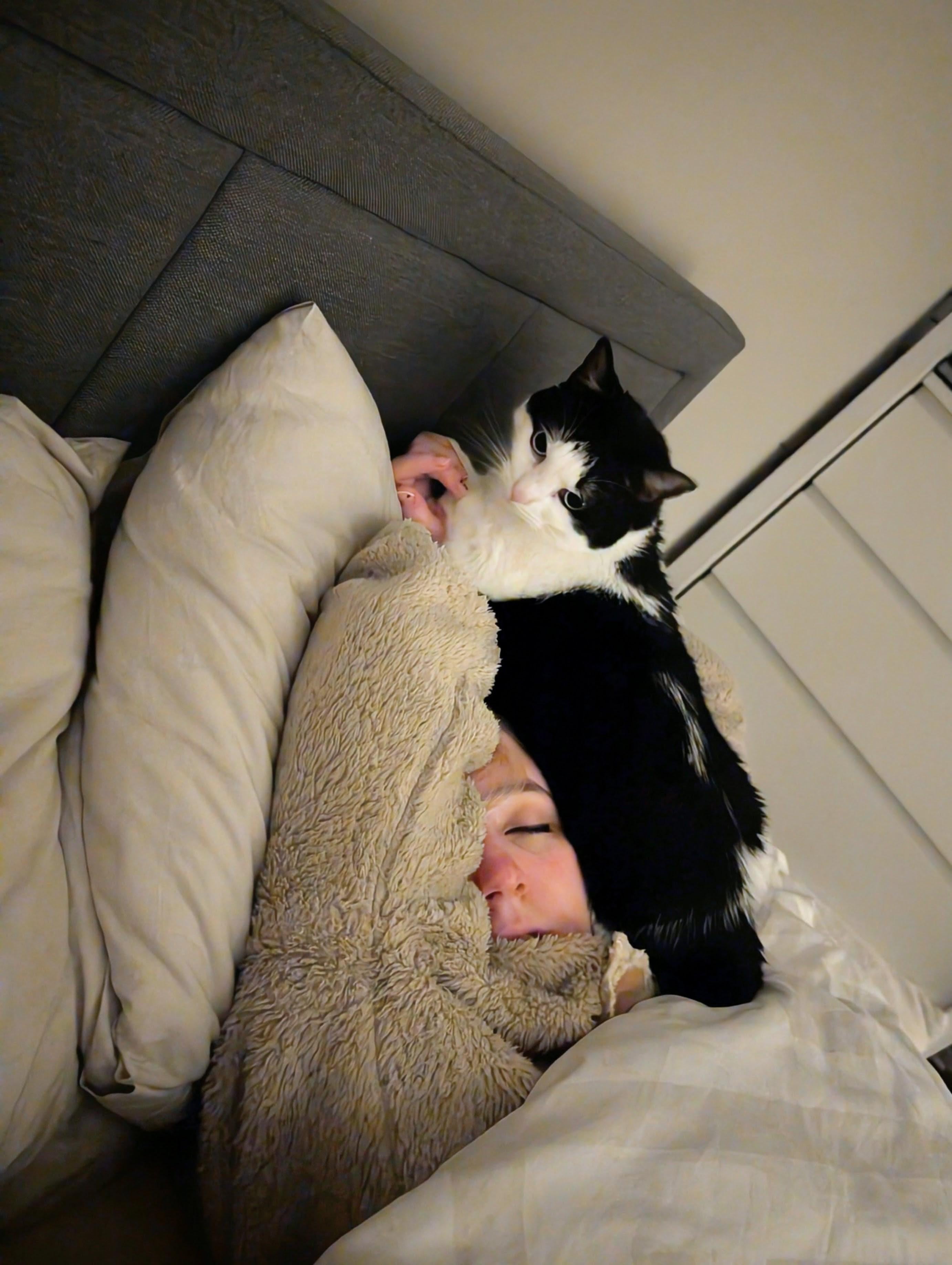 Every morning. Cat must sit on head