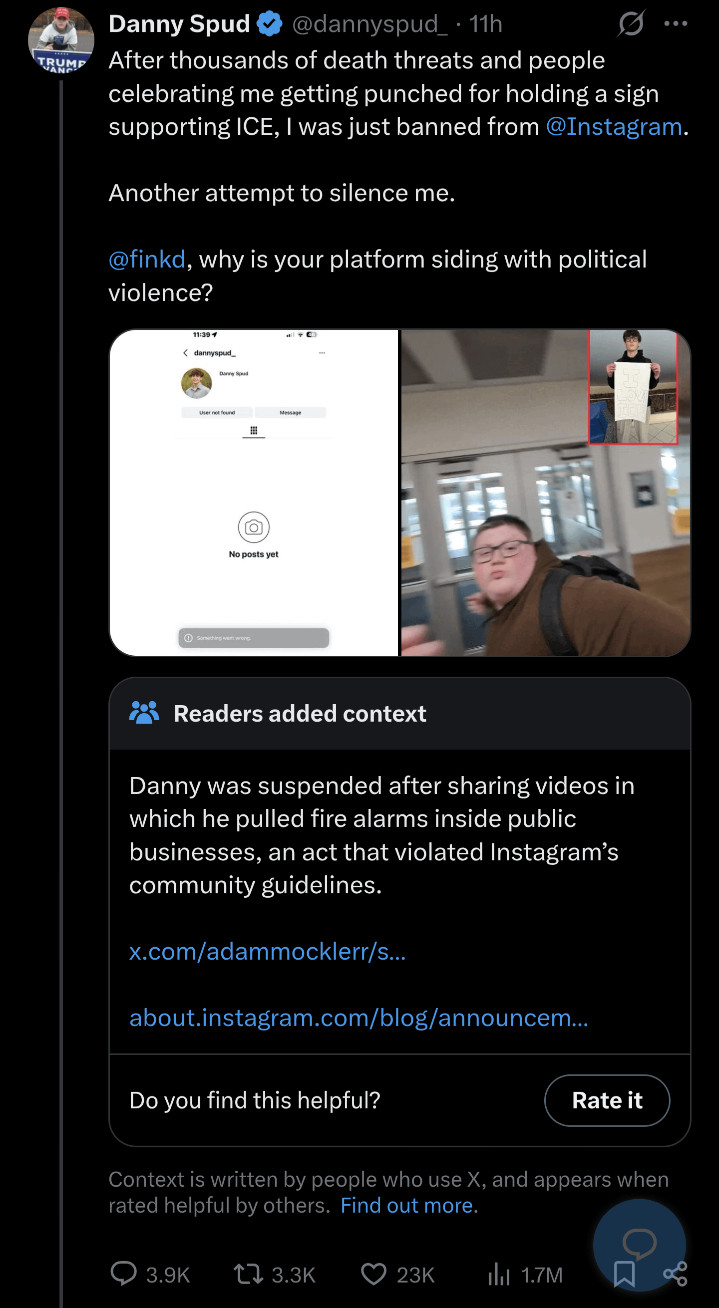 Community Notes crushing his narrative.