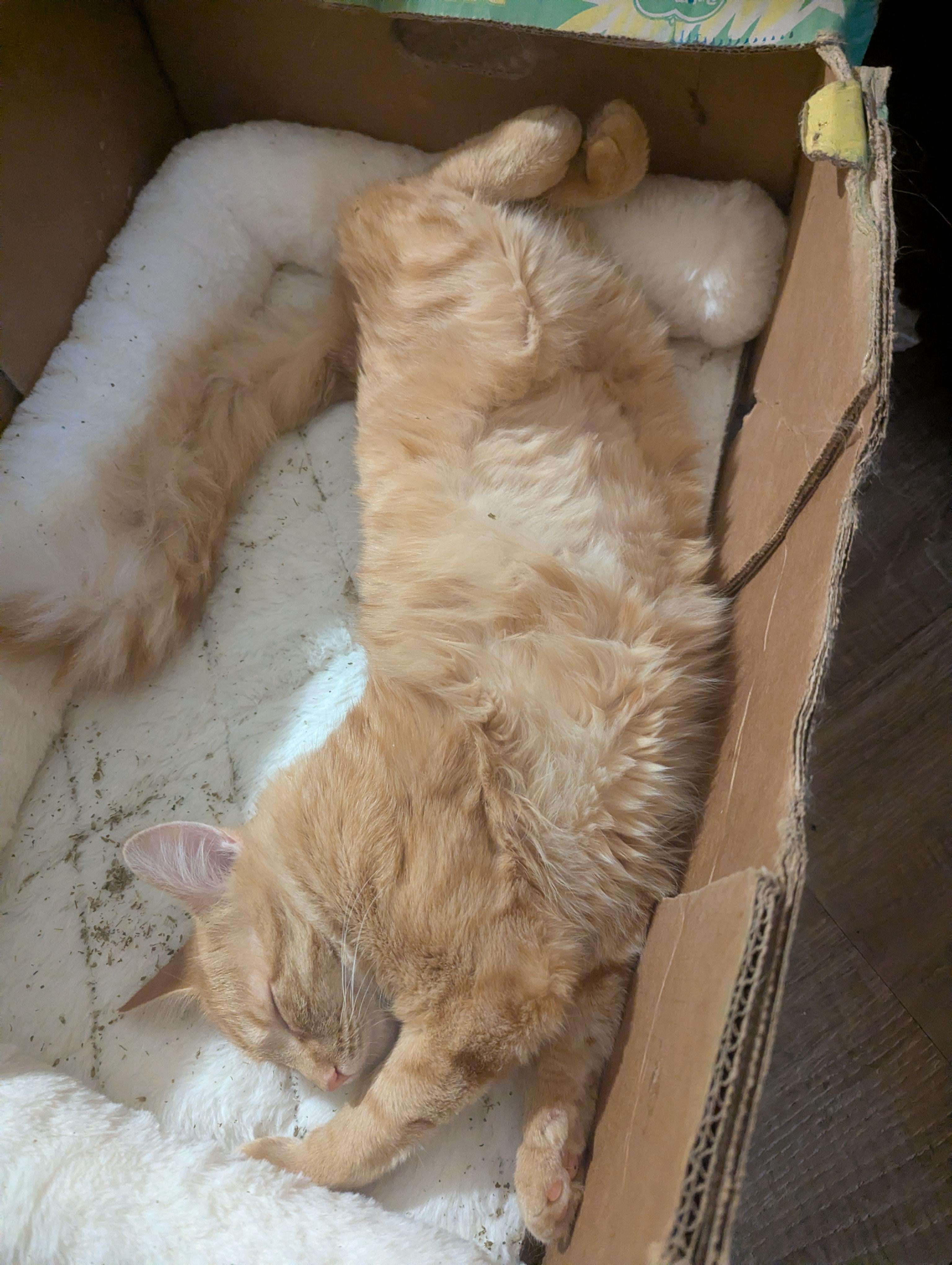 She fell asleep in the 'catnip box'